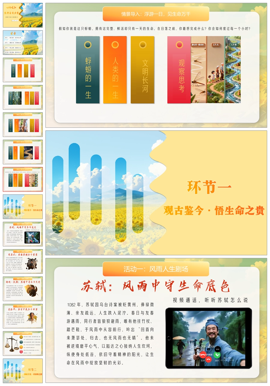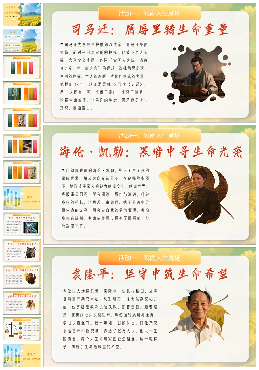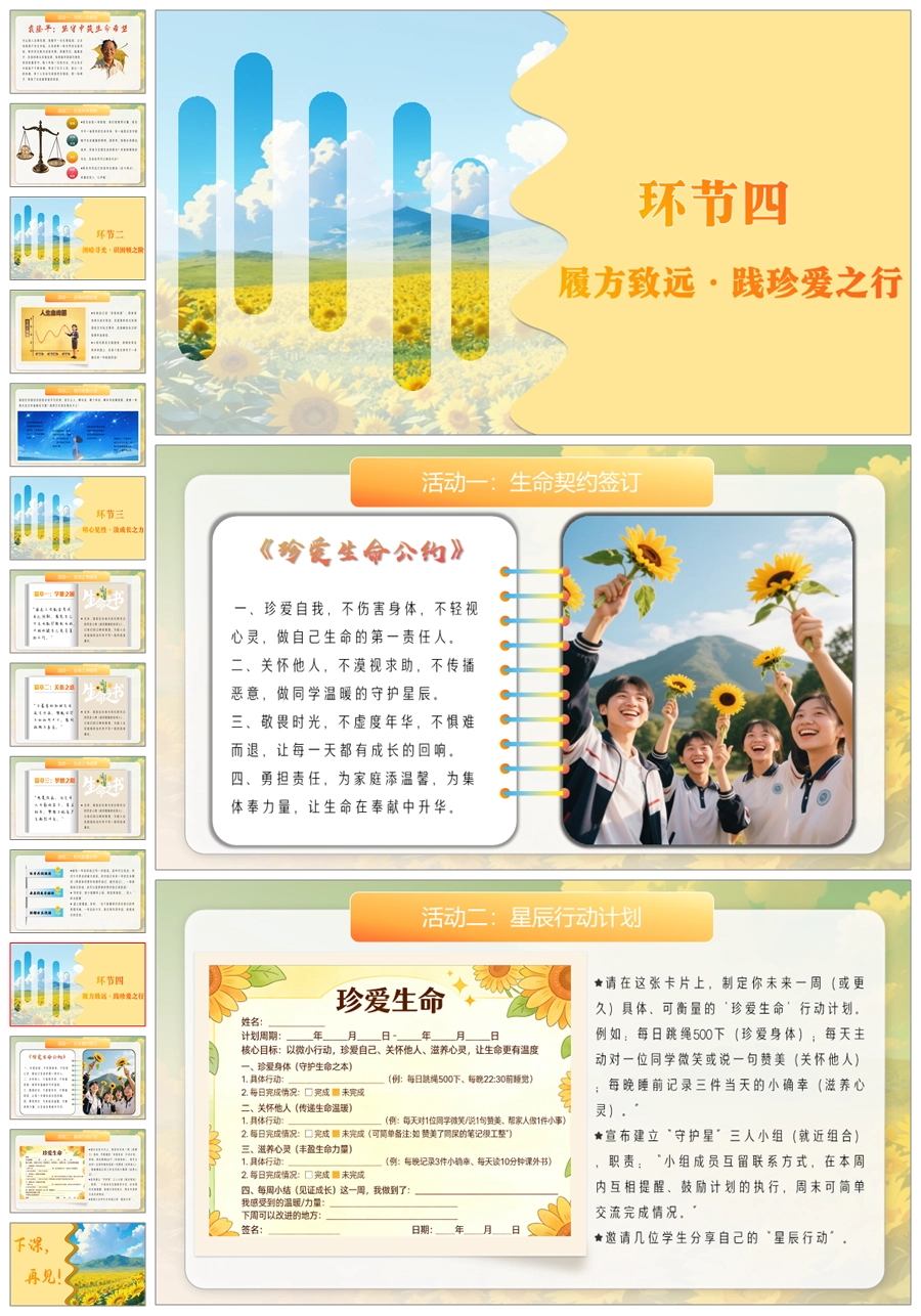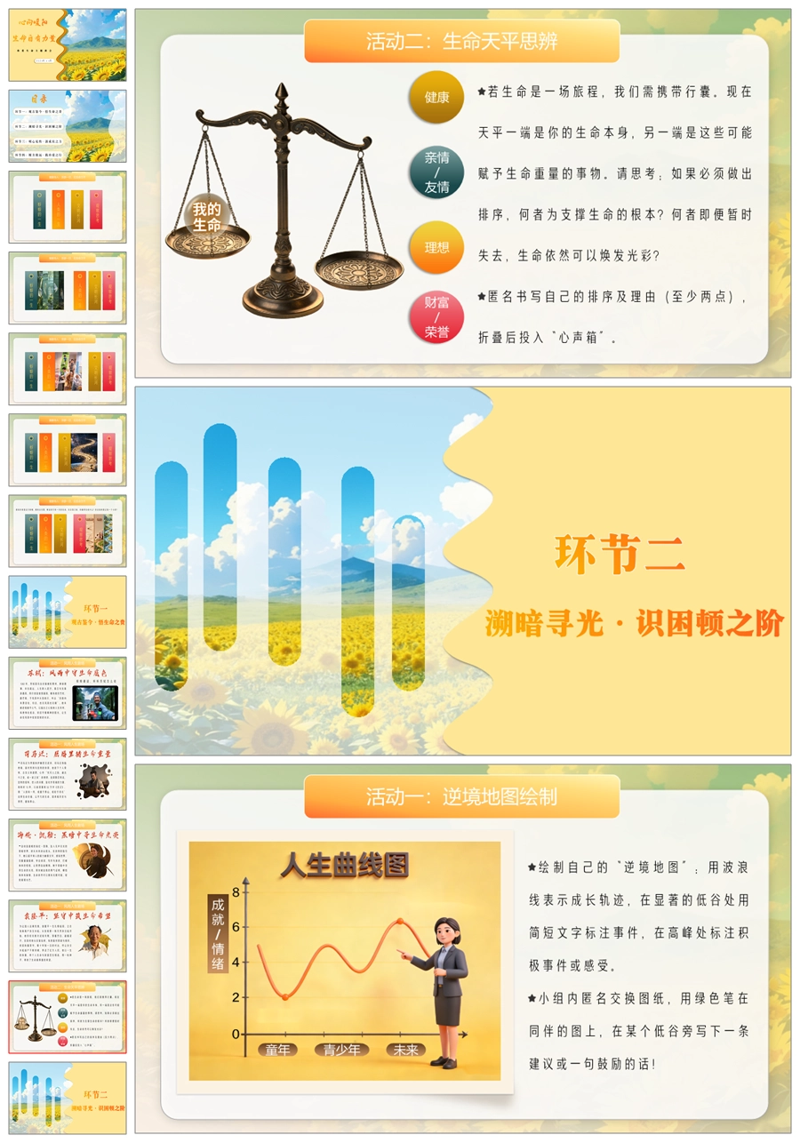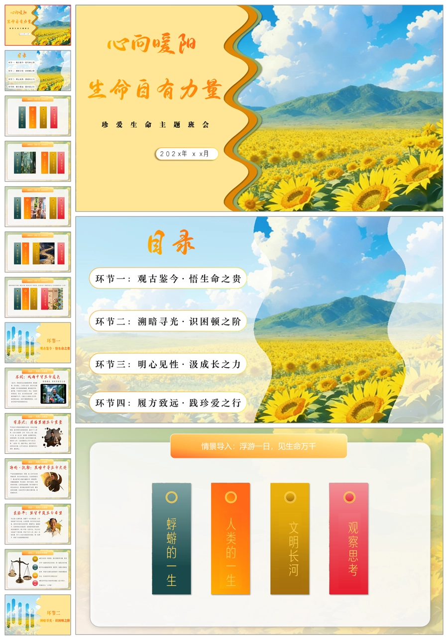 【6077】《心向暖阳生命自有力量》珍爱生命主题班会PPT课件+教案+视频