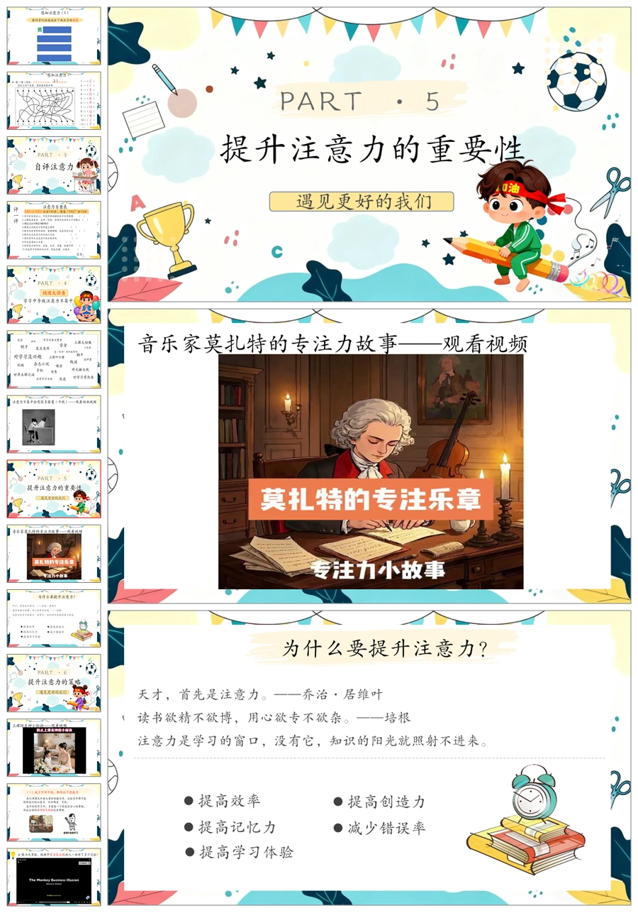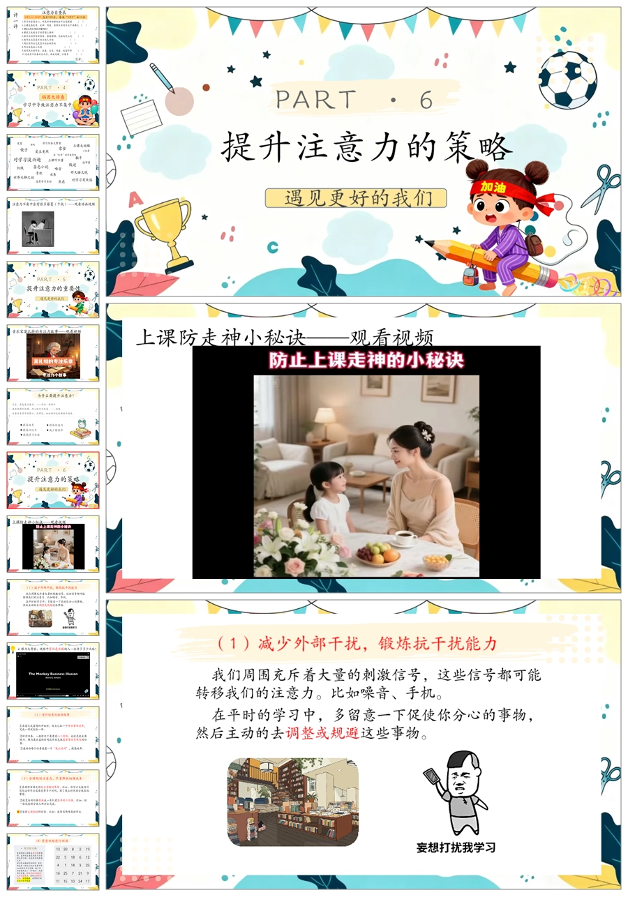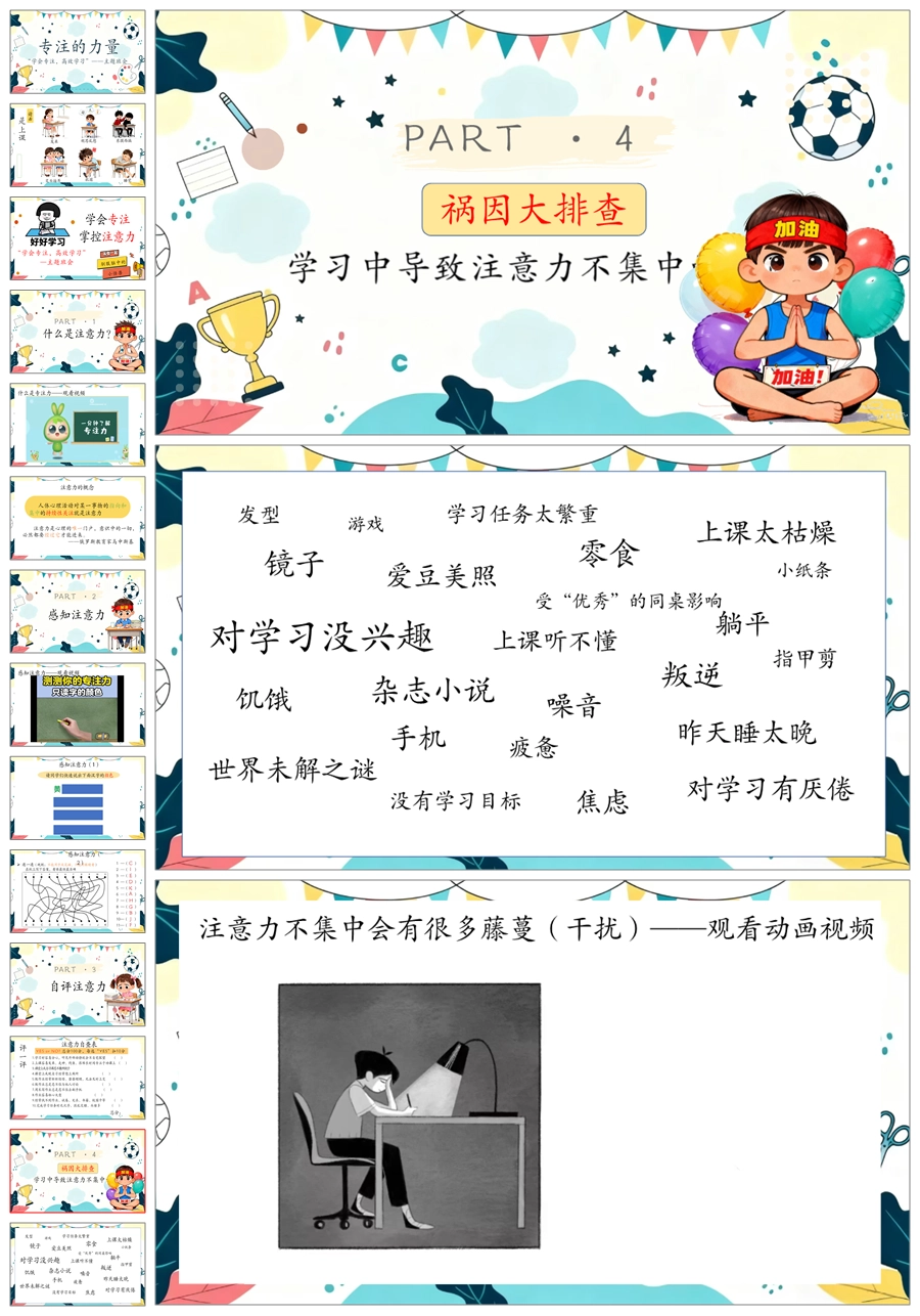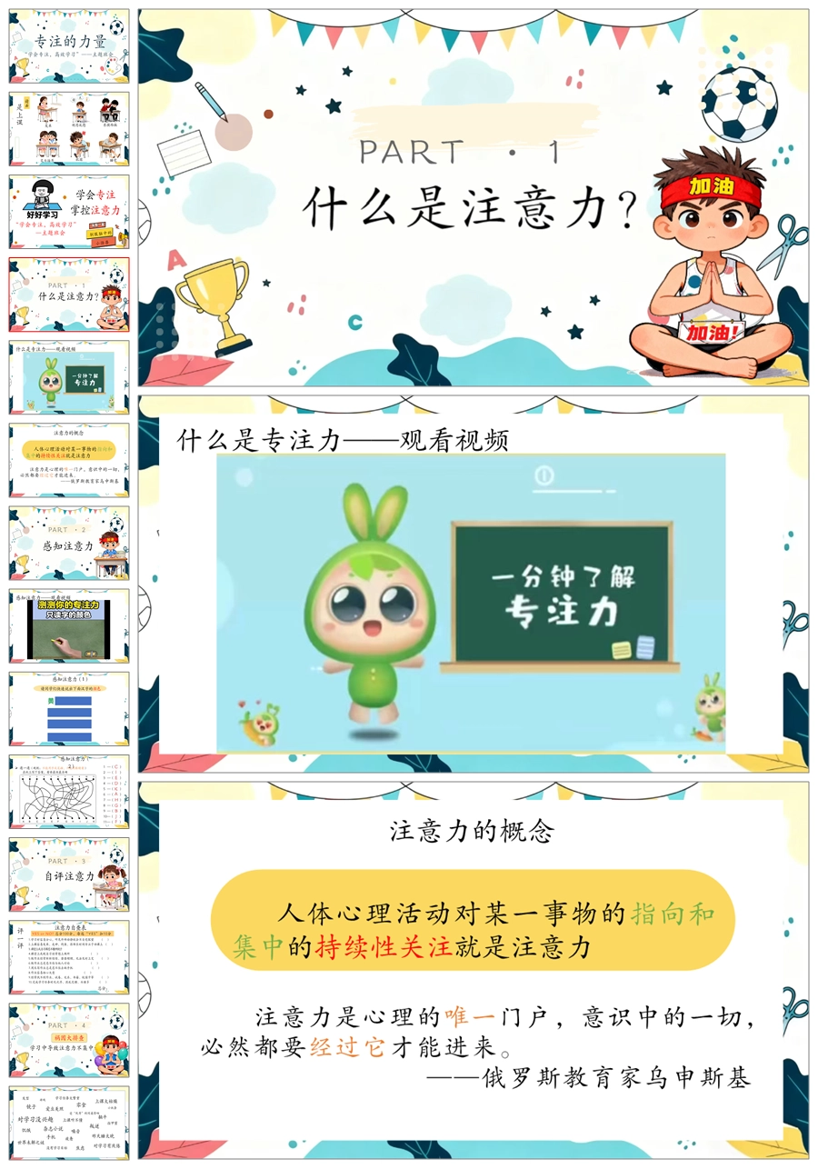 【6078】《学会专注高效学习》专注的力量主题班会PPT课件+教案+逐字稿+视频