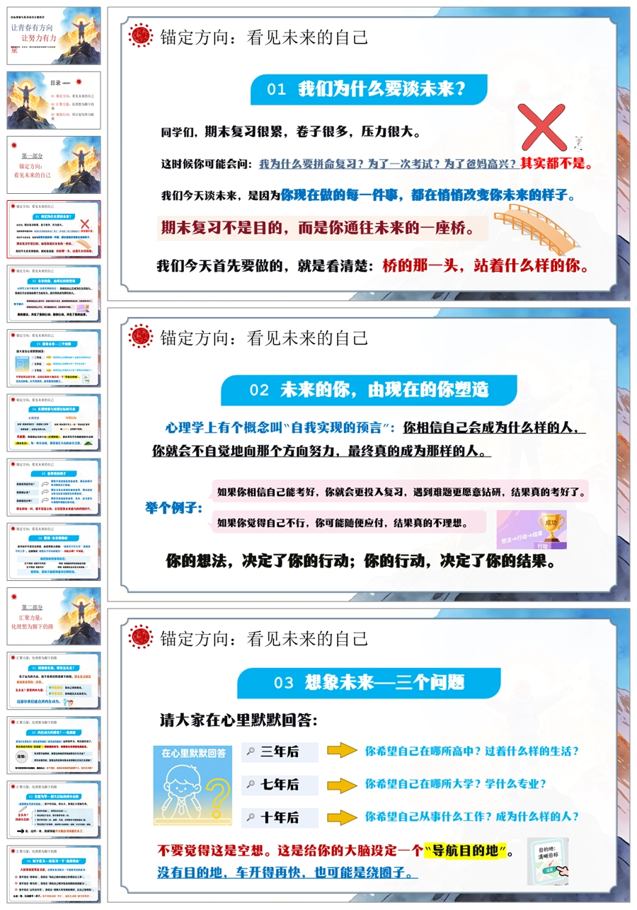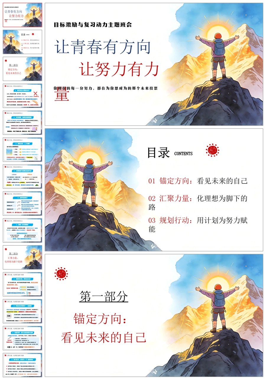 【6079】《让青春有方向,让努力有力量》励志教育主题班会PPT课件+教案