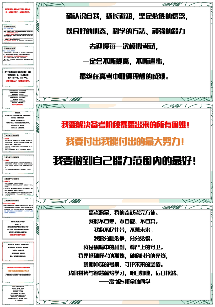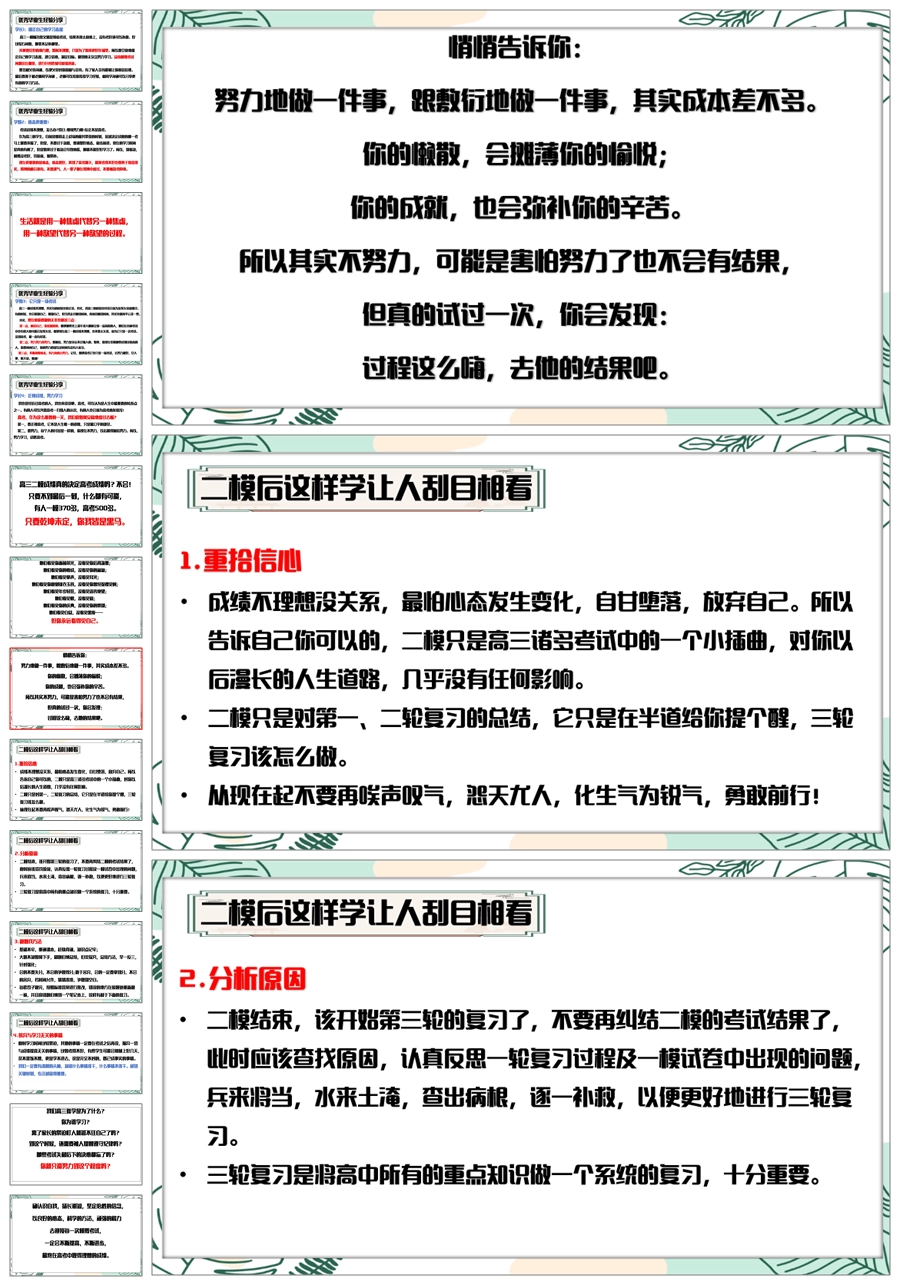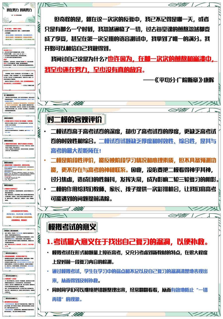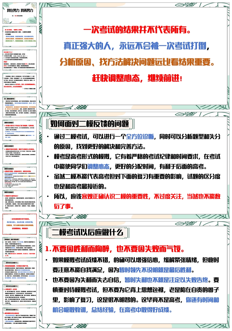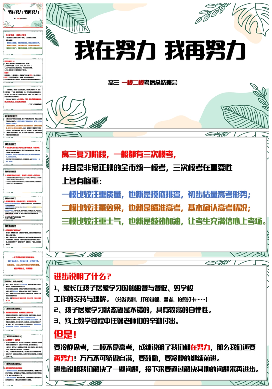 【6080】《我在努力我再努力》高三一模二模考后总结主题班会PPT课件+发言稿