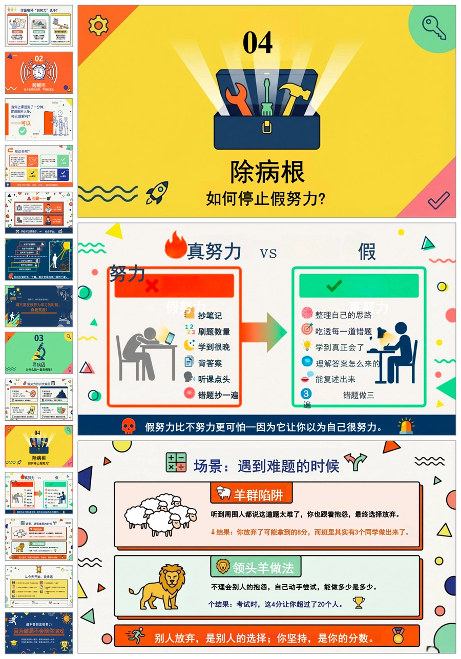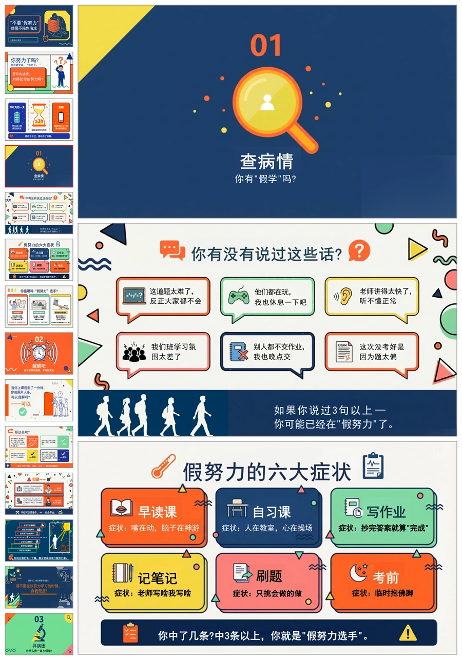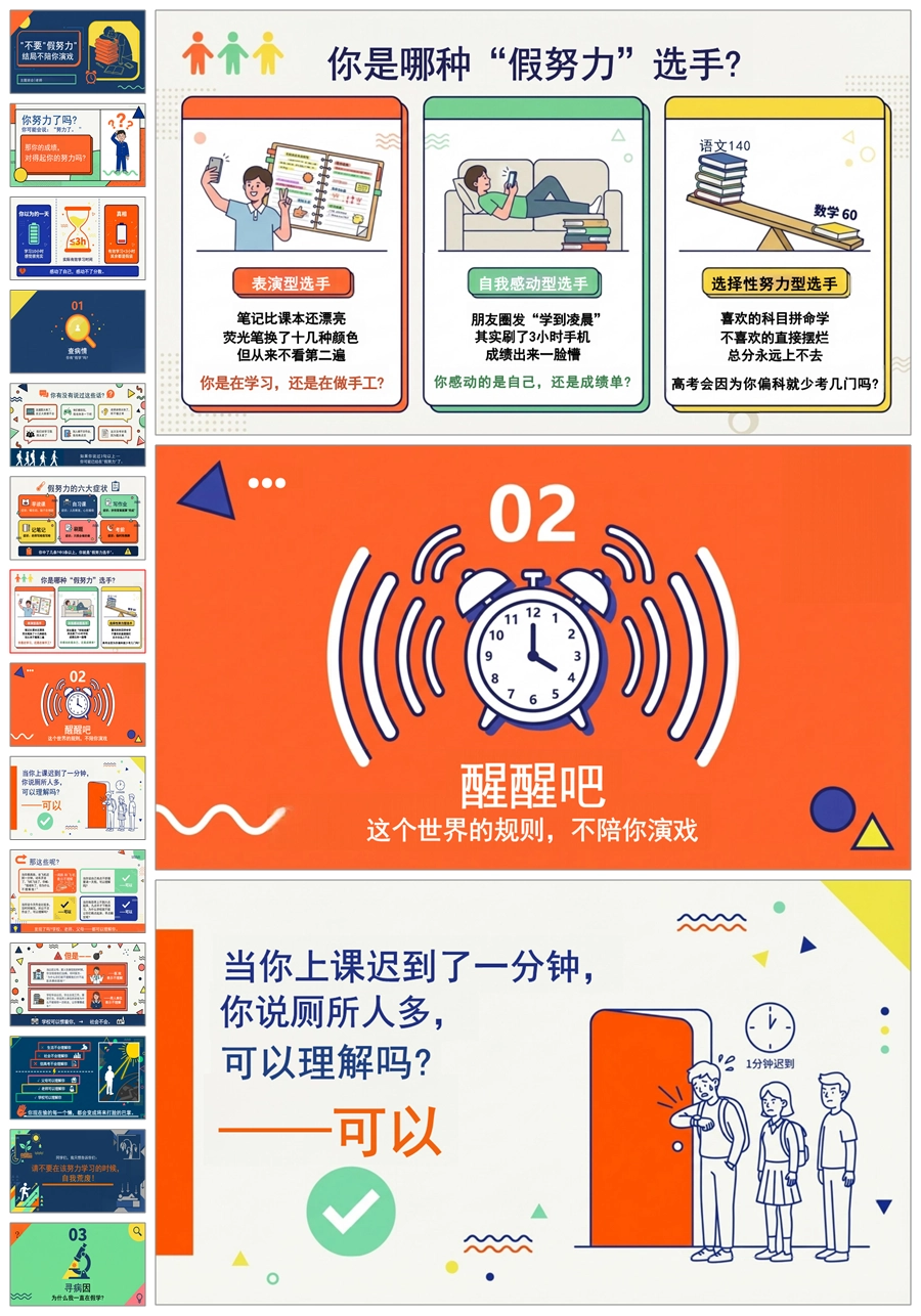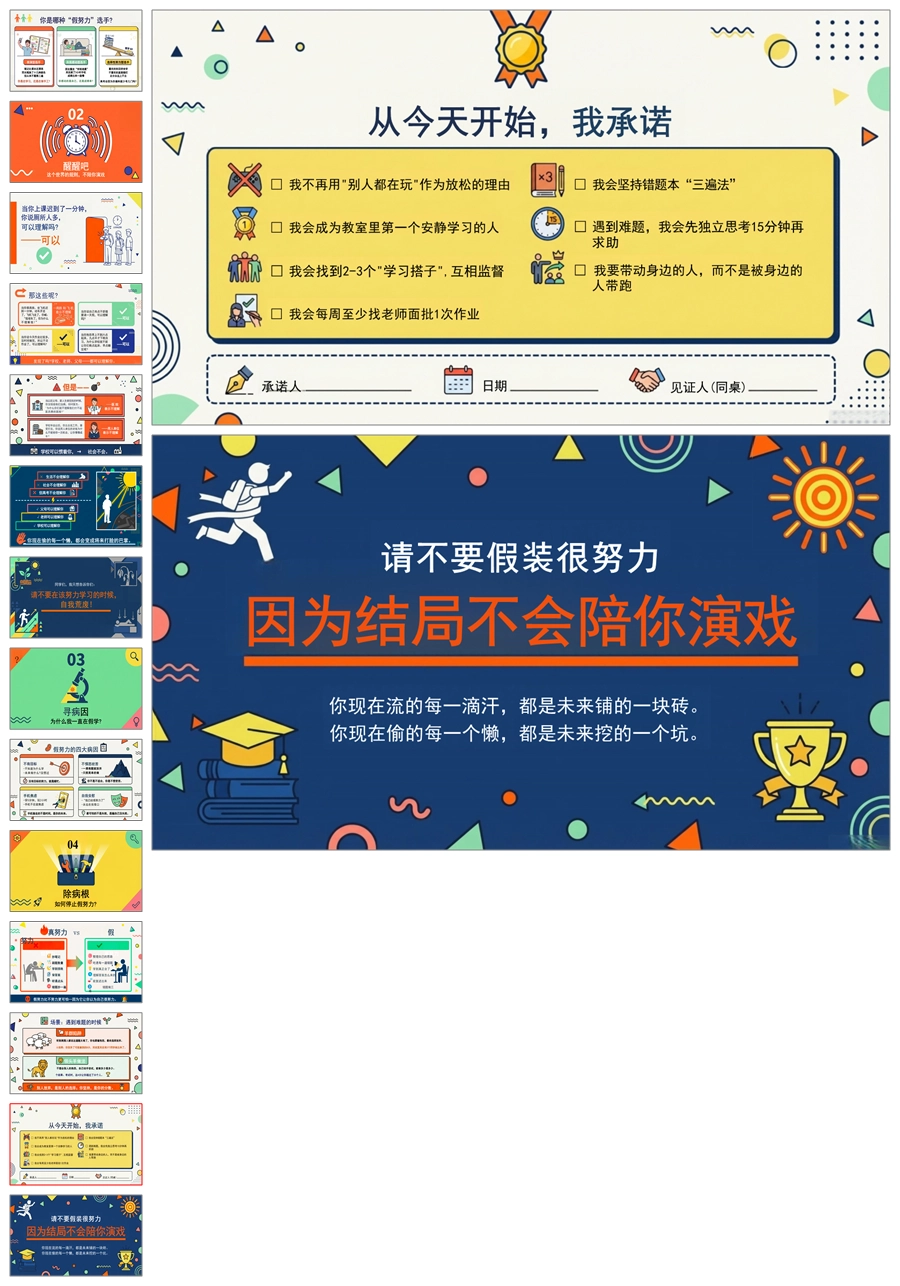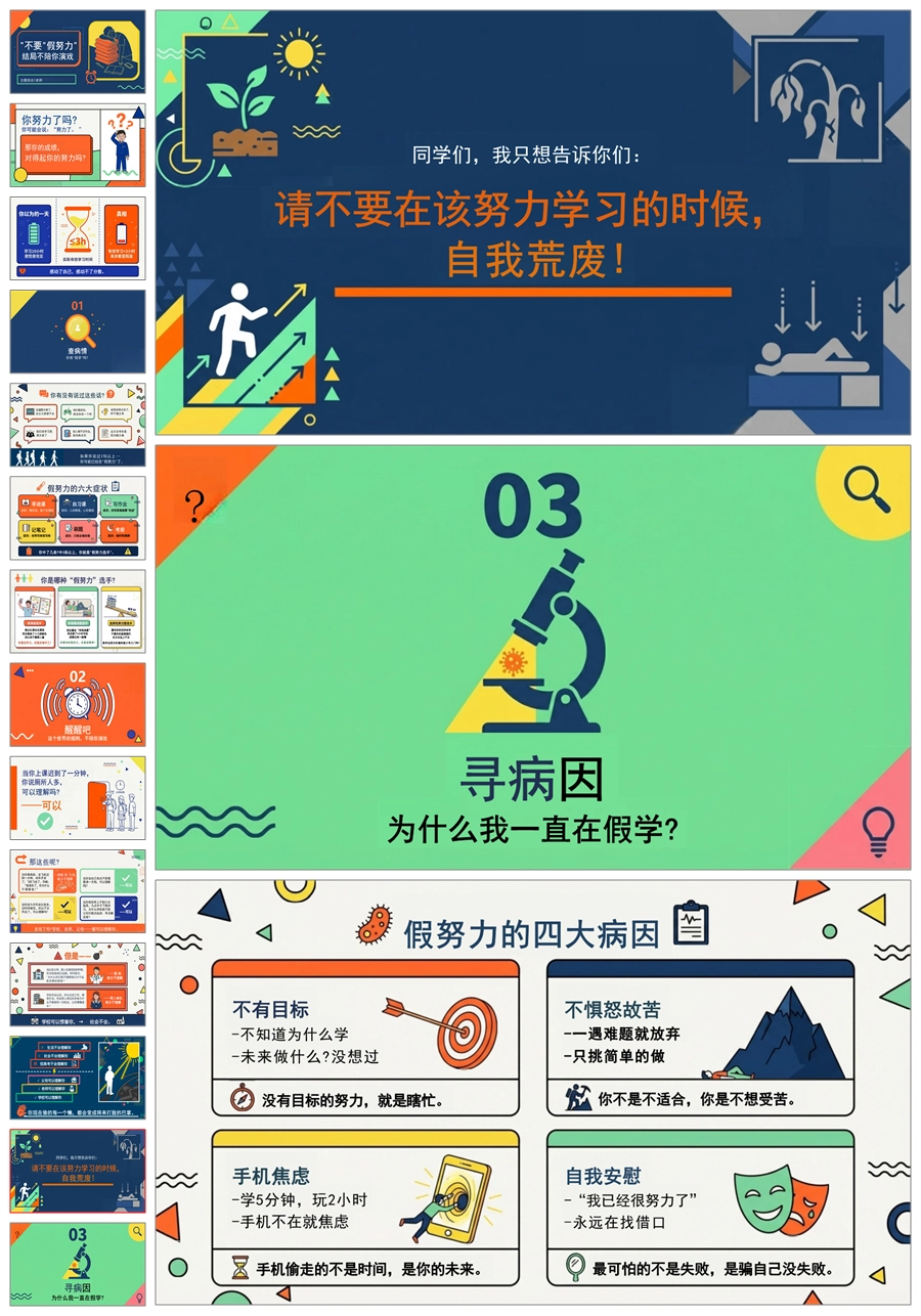 【6080】《拒绝假努力不要假努力》励志教育主题班会PPT课件+教案