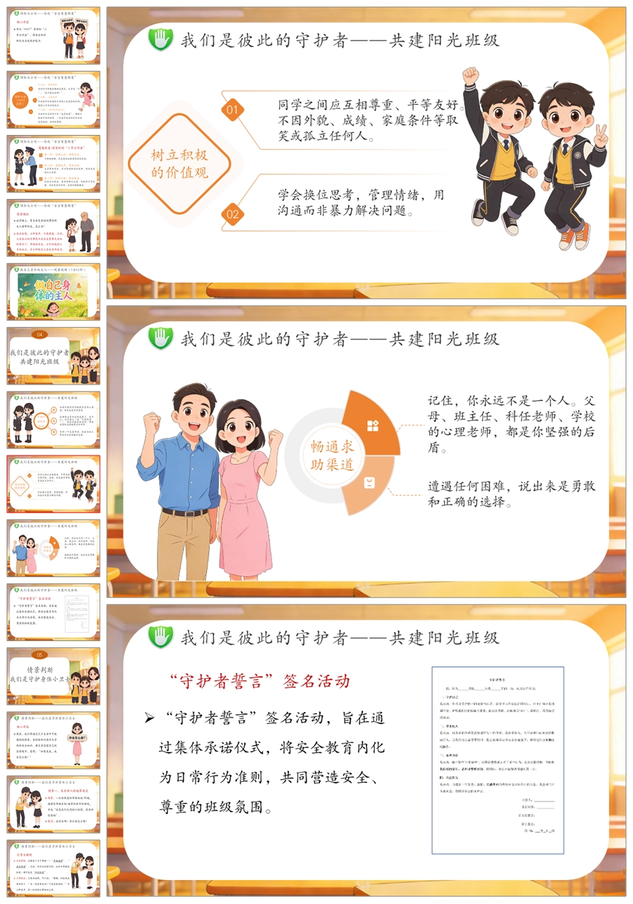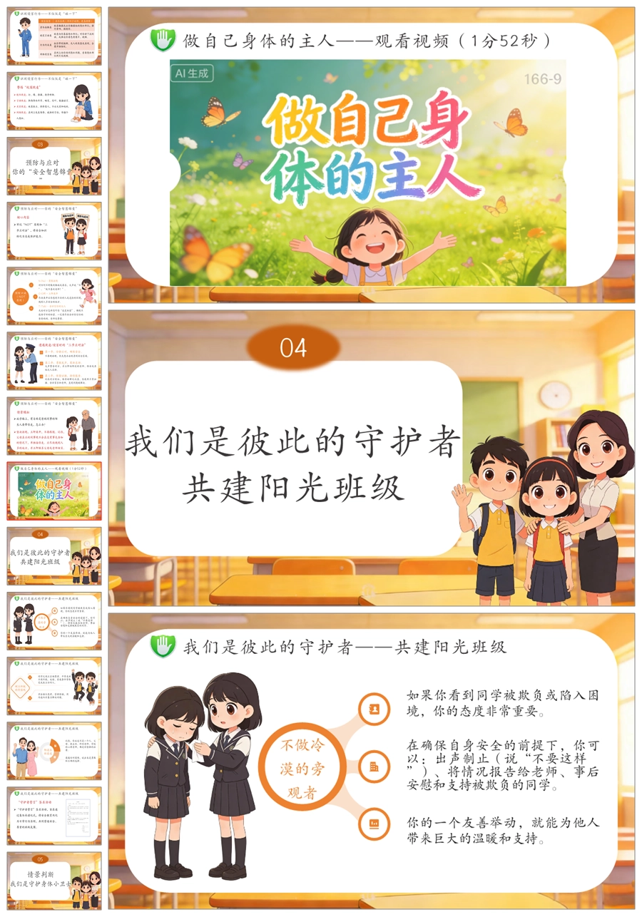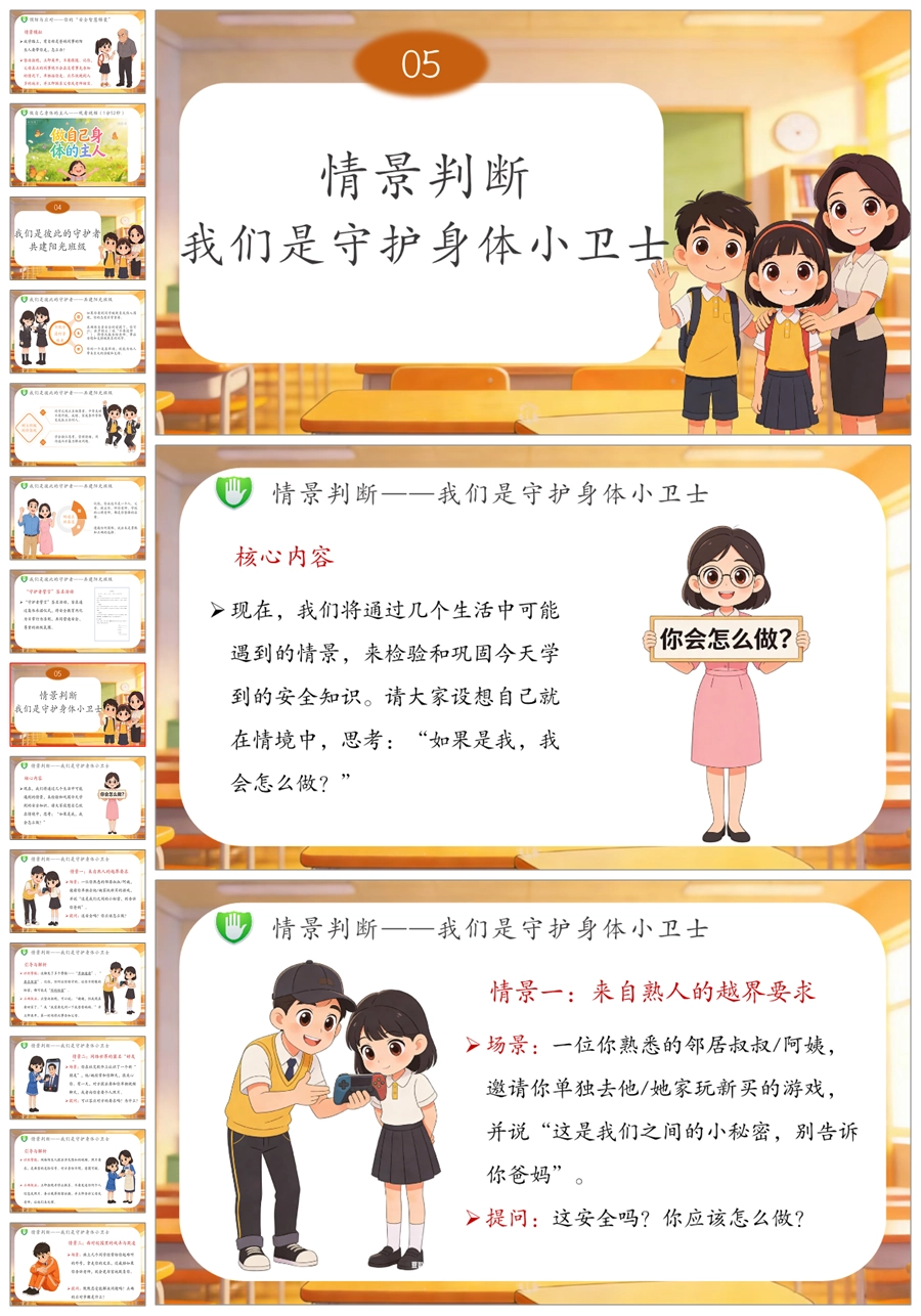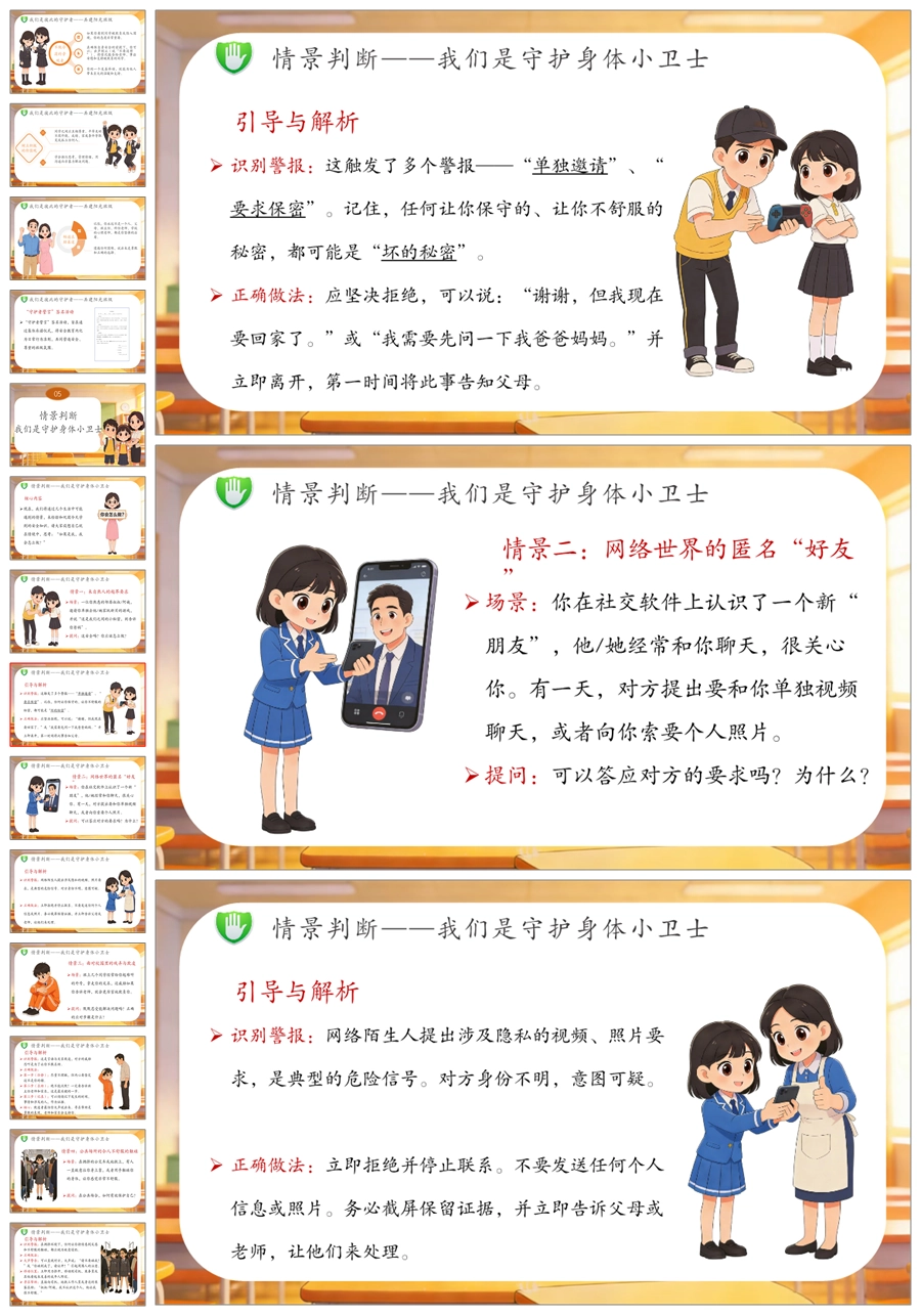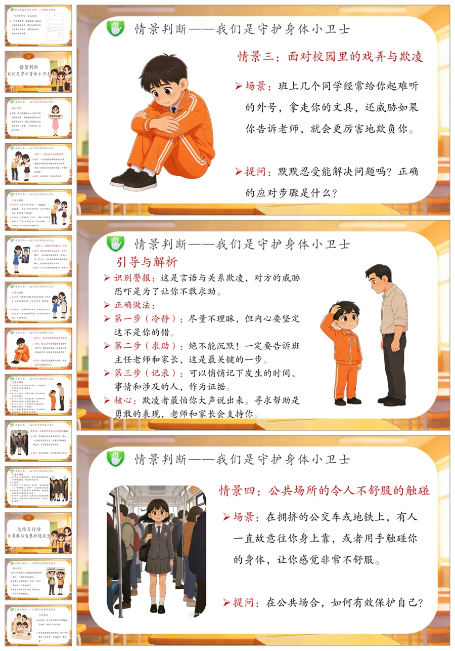 【6081】《守护纯真 勇敢说不》高年级防侵害安全教育主题班会PPT课件+演讲稿+教案+视频