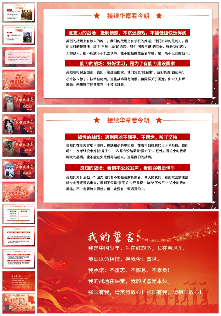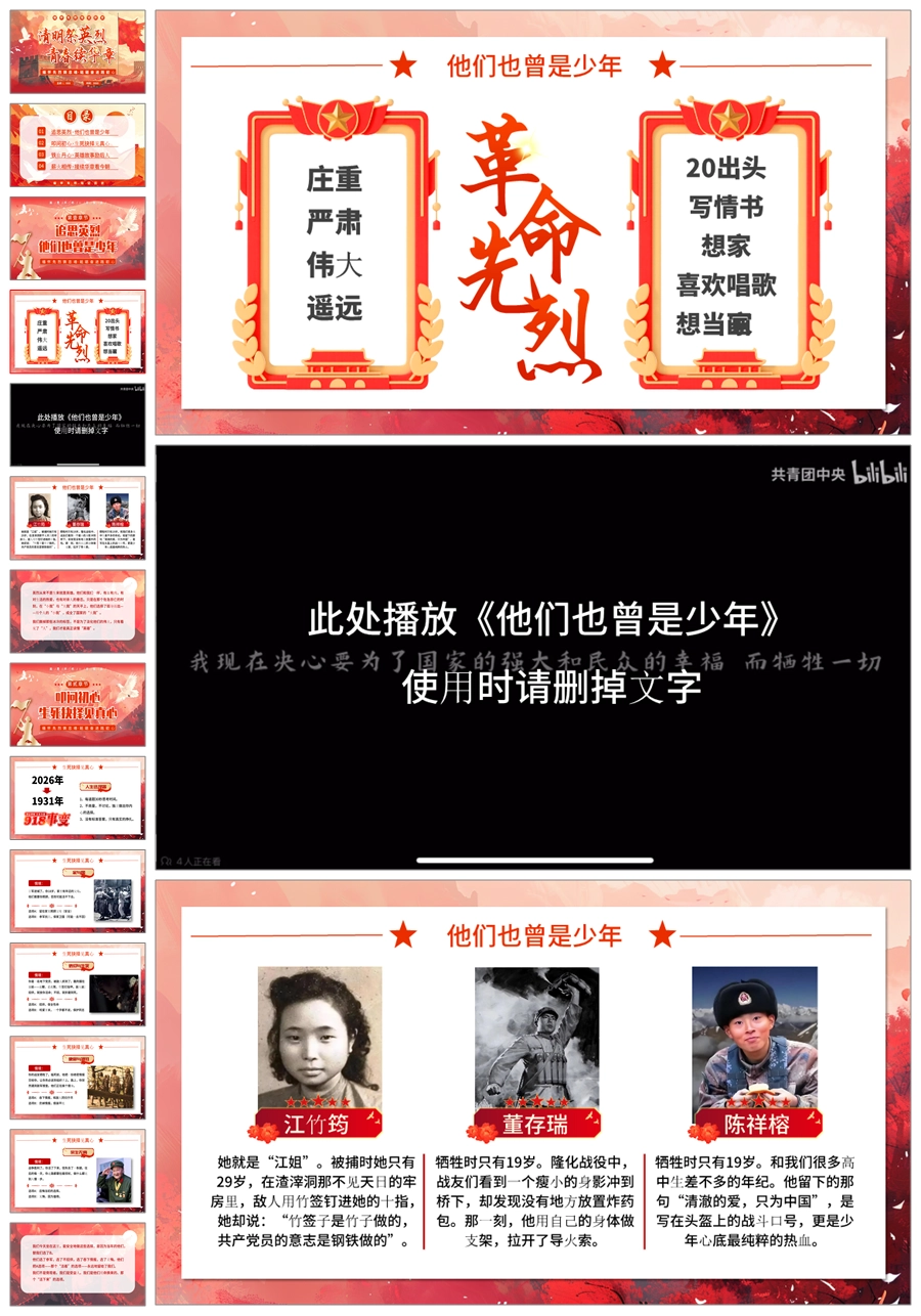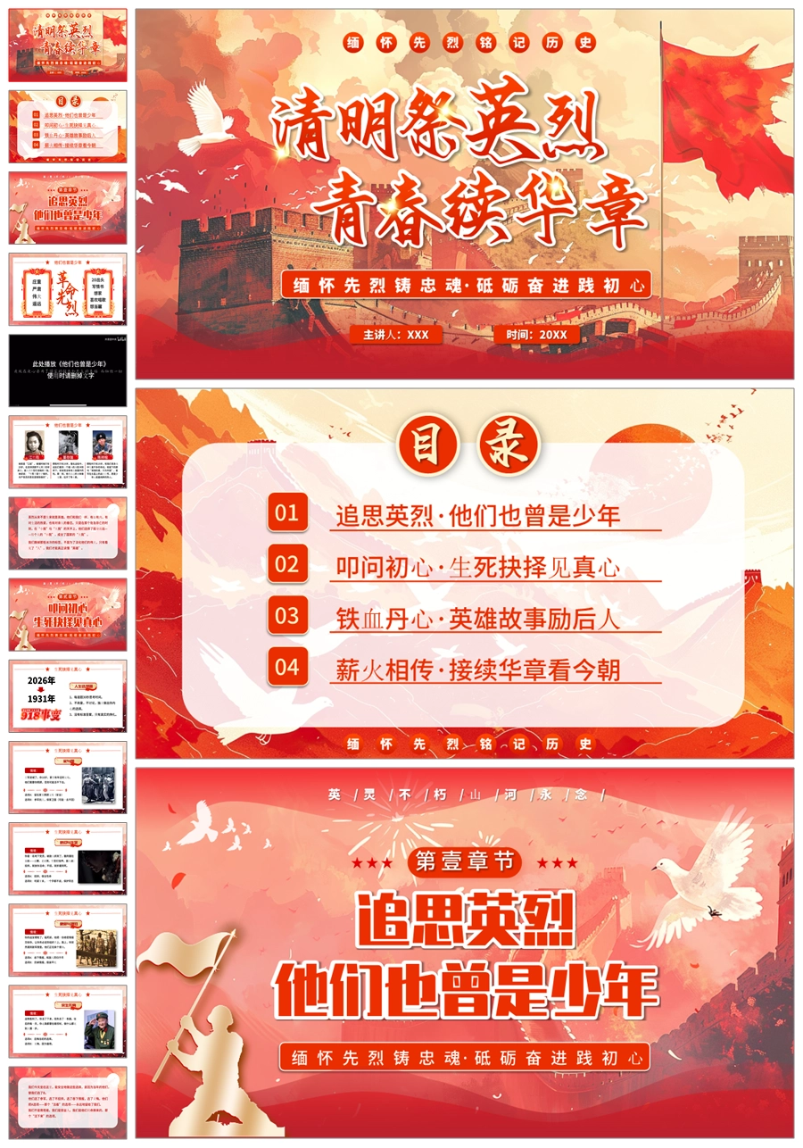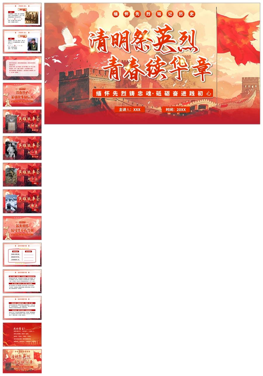 【6084】《清明祭英烈》清明节主题班会PPT课件+教案+发言稿+视频