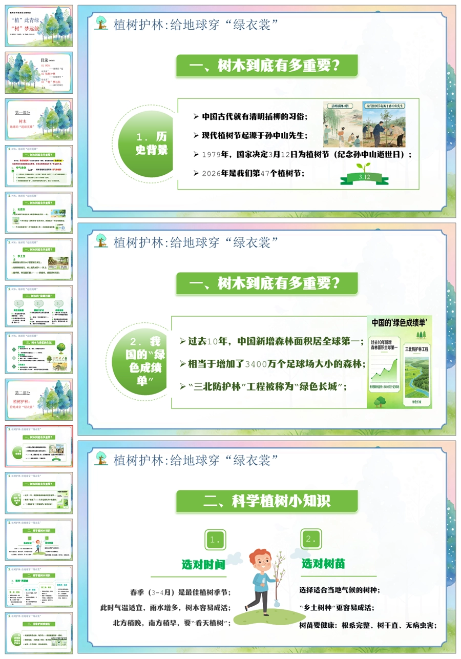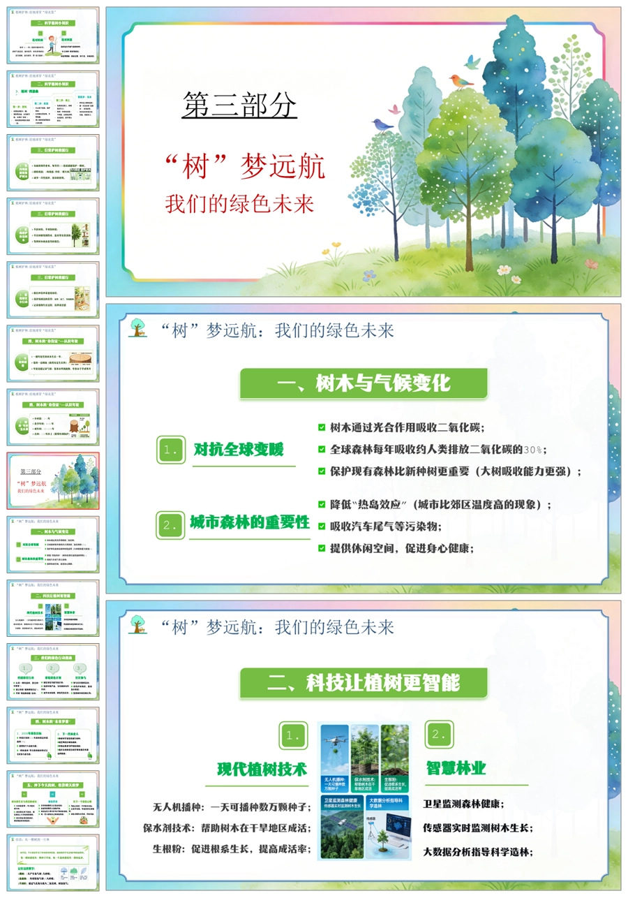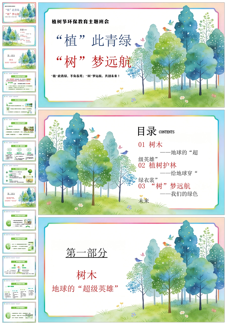【6090】《“植”此青绿,“树”梦远航》植树节主题班会PPT课件+教案