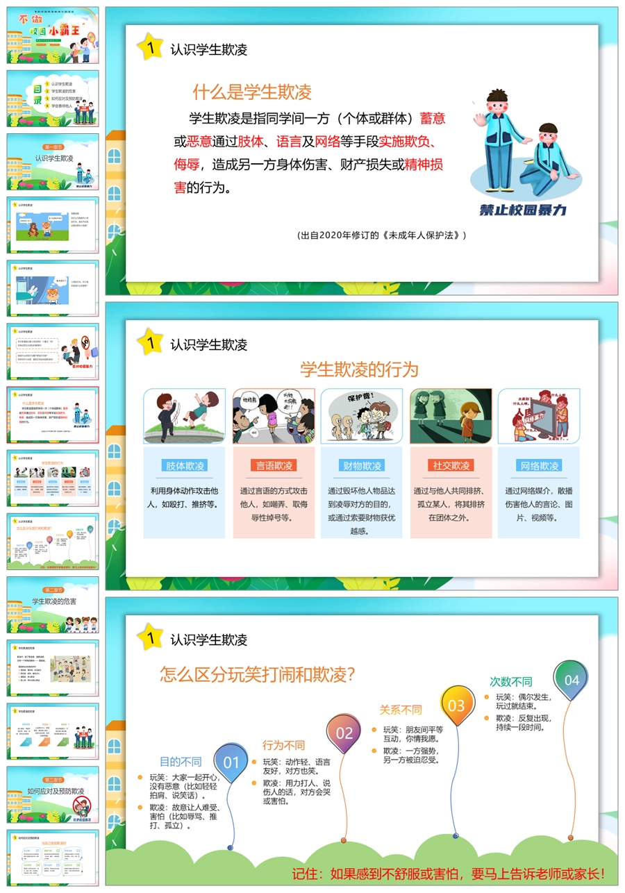 【6093】《不做校园小霸王》小学生防欺凌主题班会PPT课件+教案+演讲稿+视频