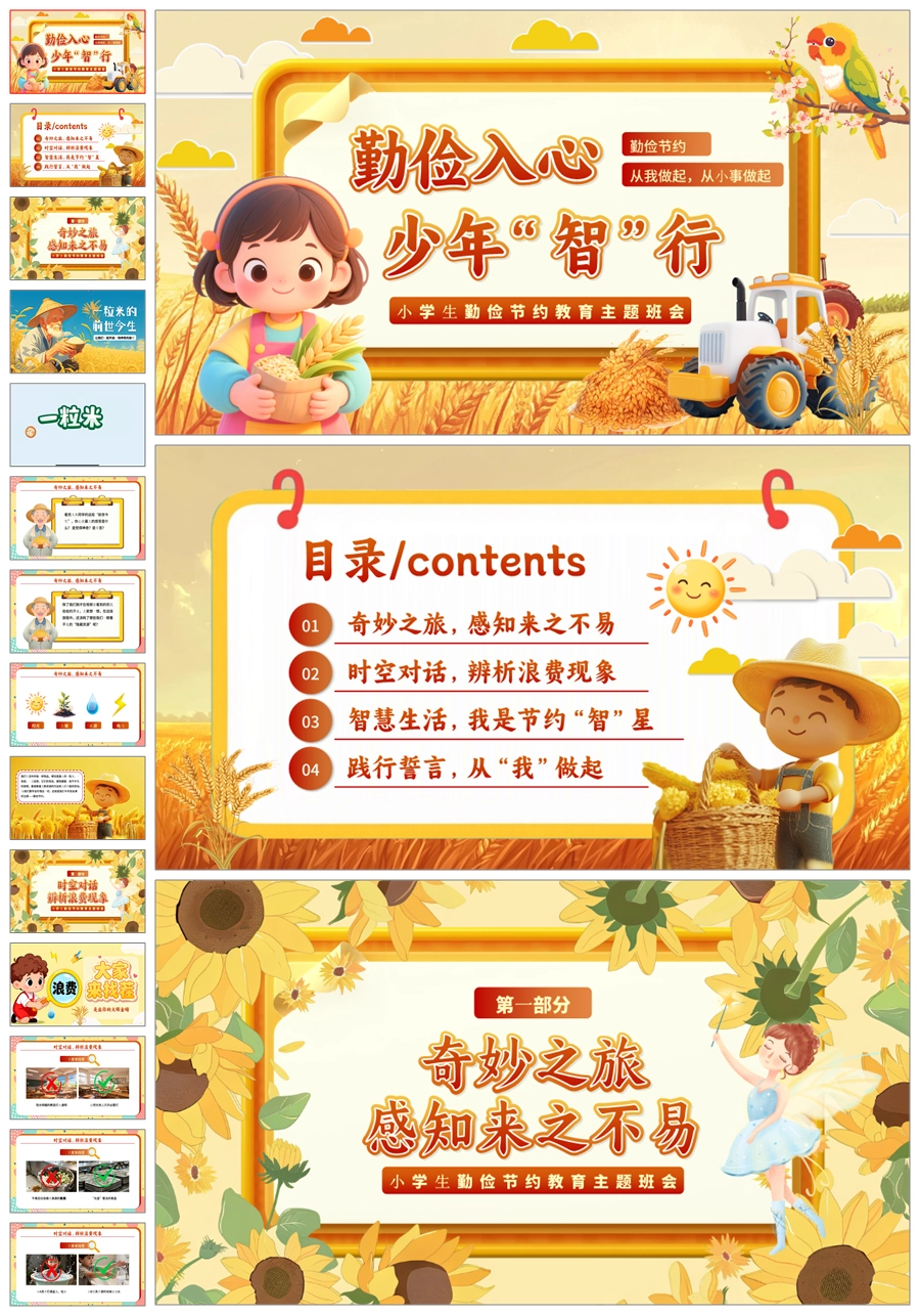 【6100】《勤俭入心,少年“智”行》勤俭节约主题班会PPT课件+教案+视频