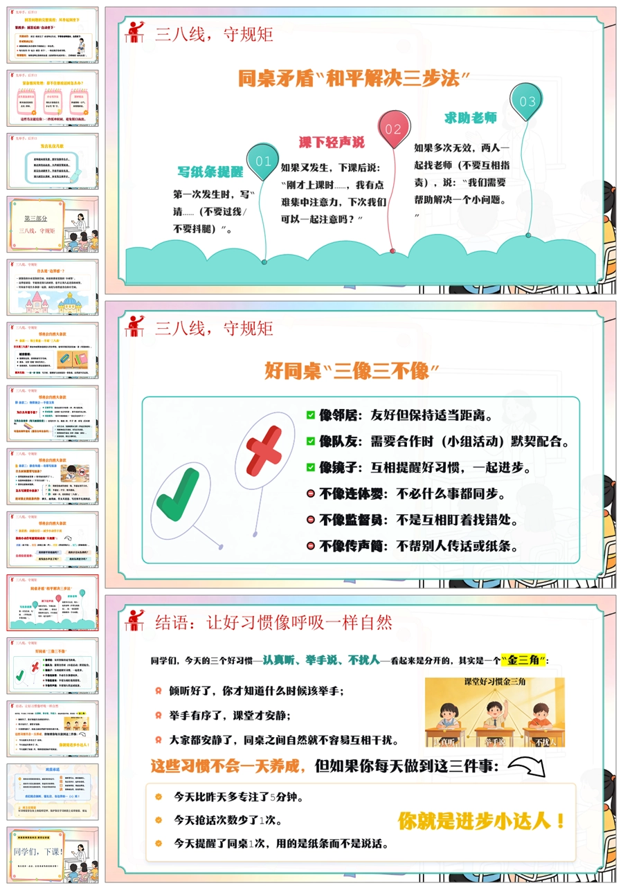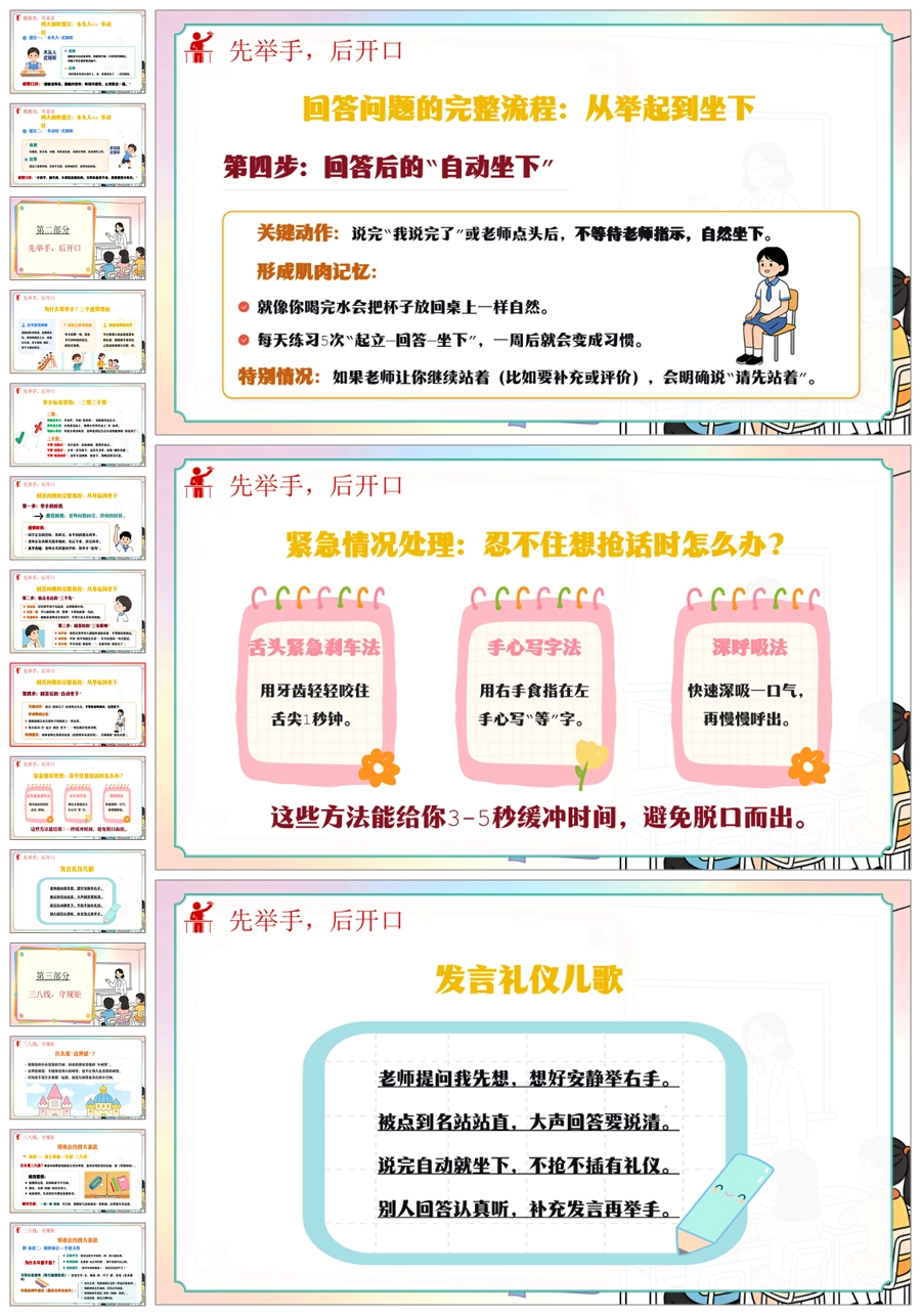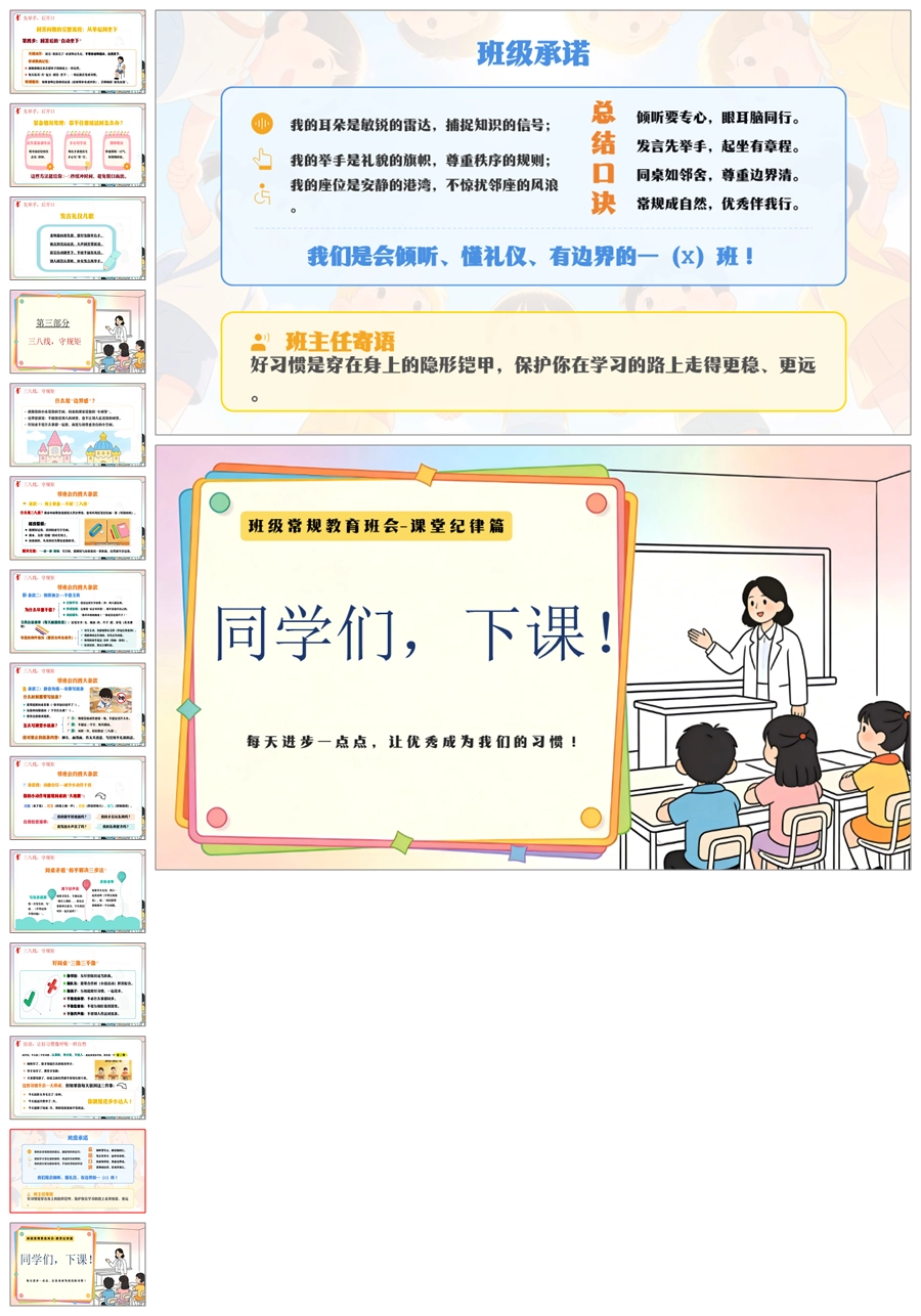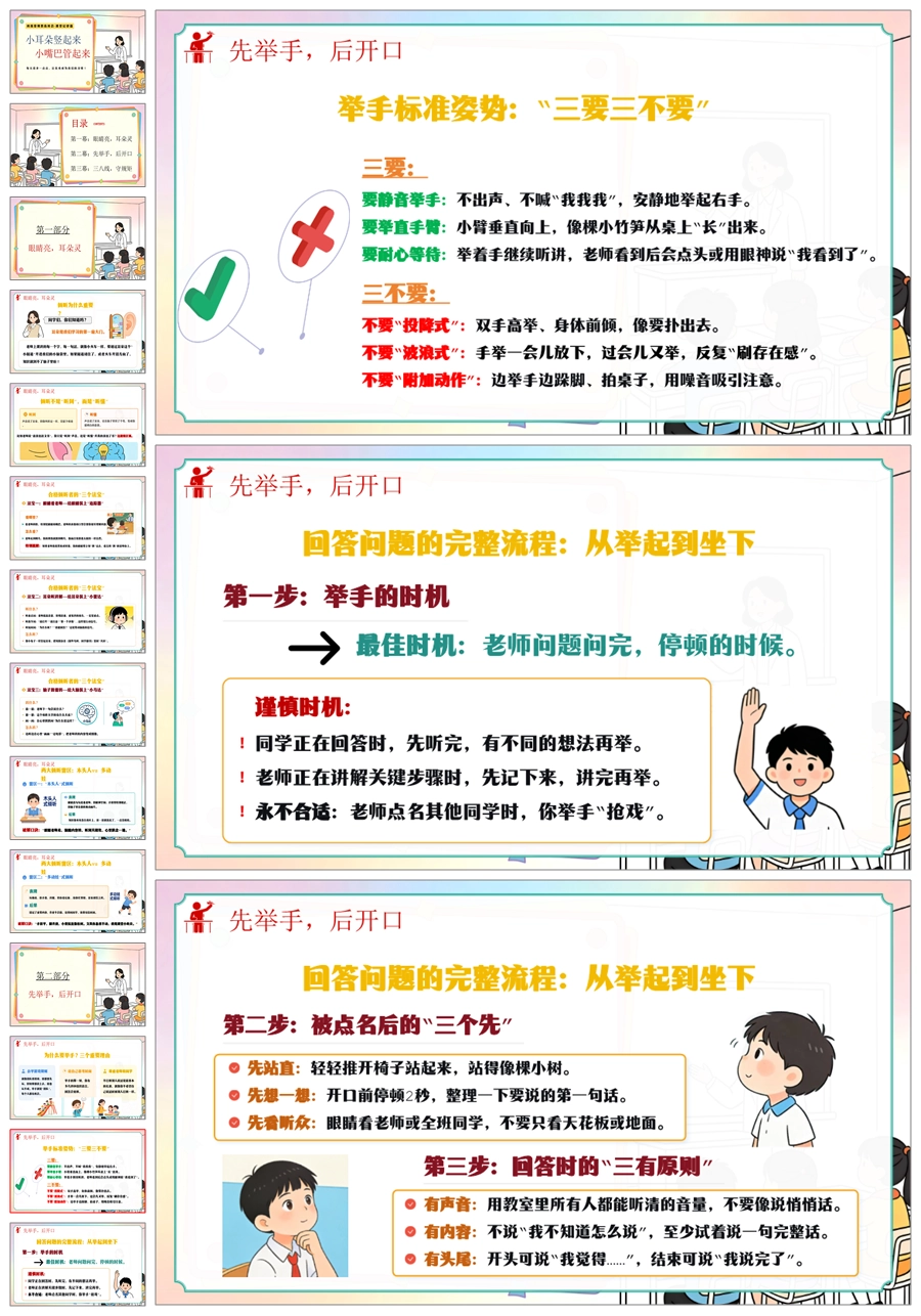 【6103】《小耳朵竖起来·小嘴巴管起来》班级常规教育班会-课堂纪律篇小学主题班会PPT课件+教案