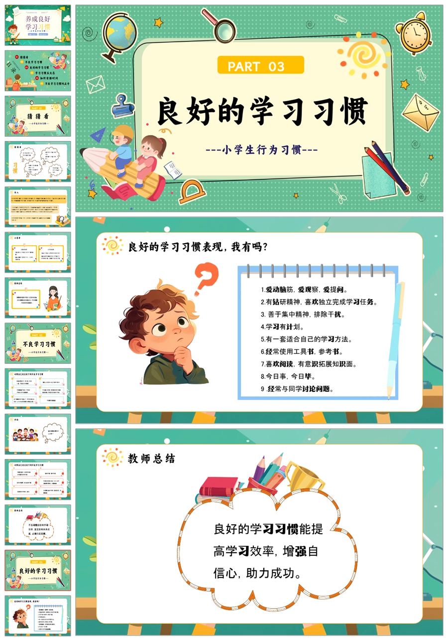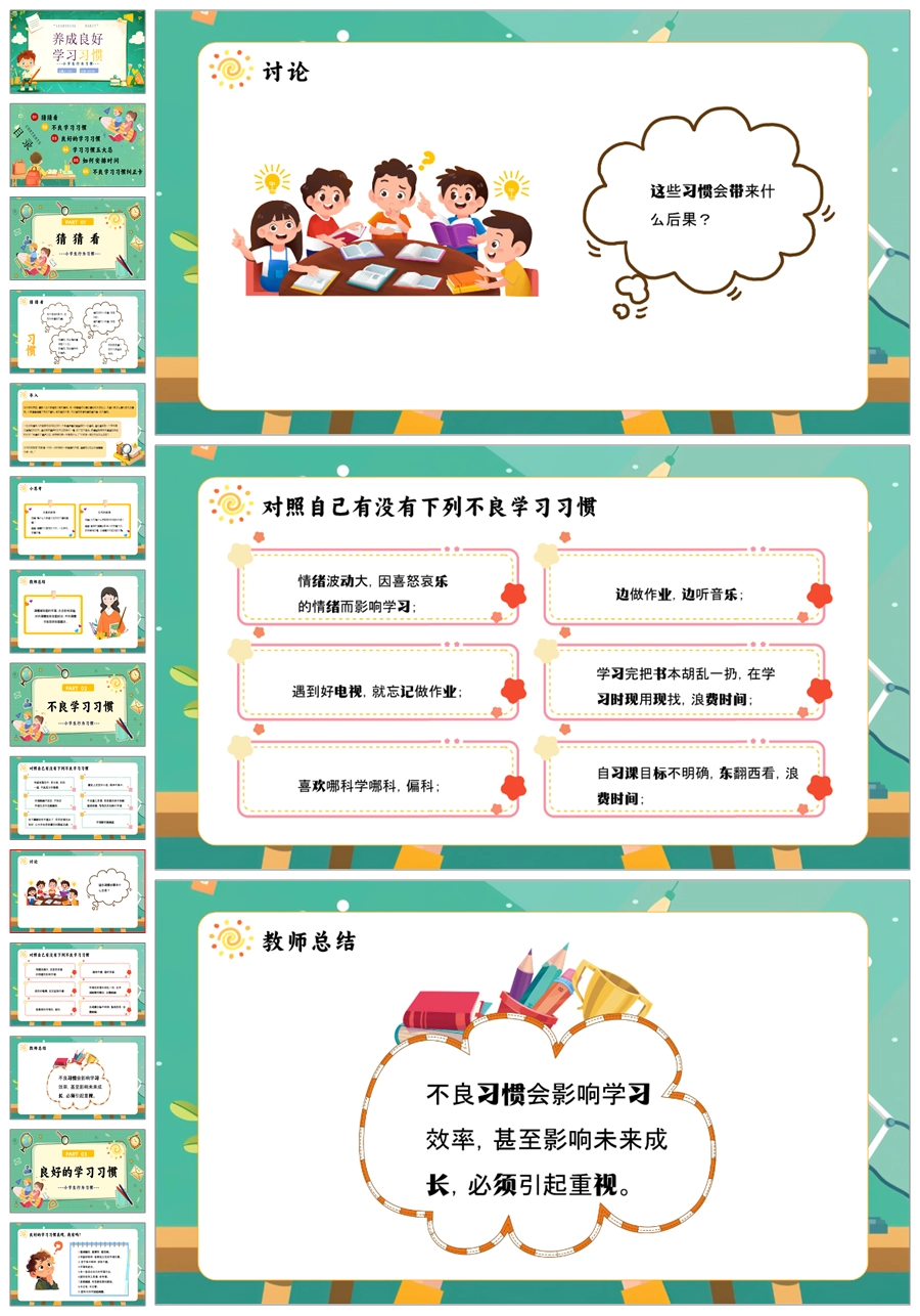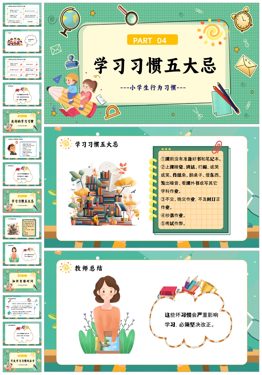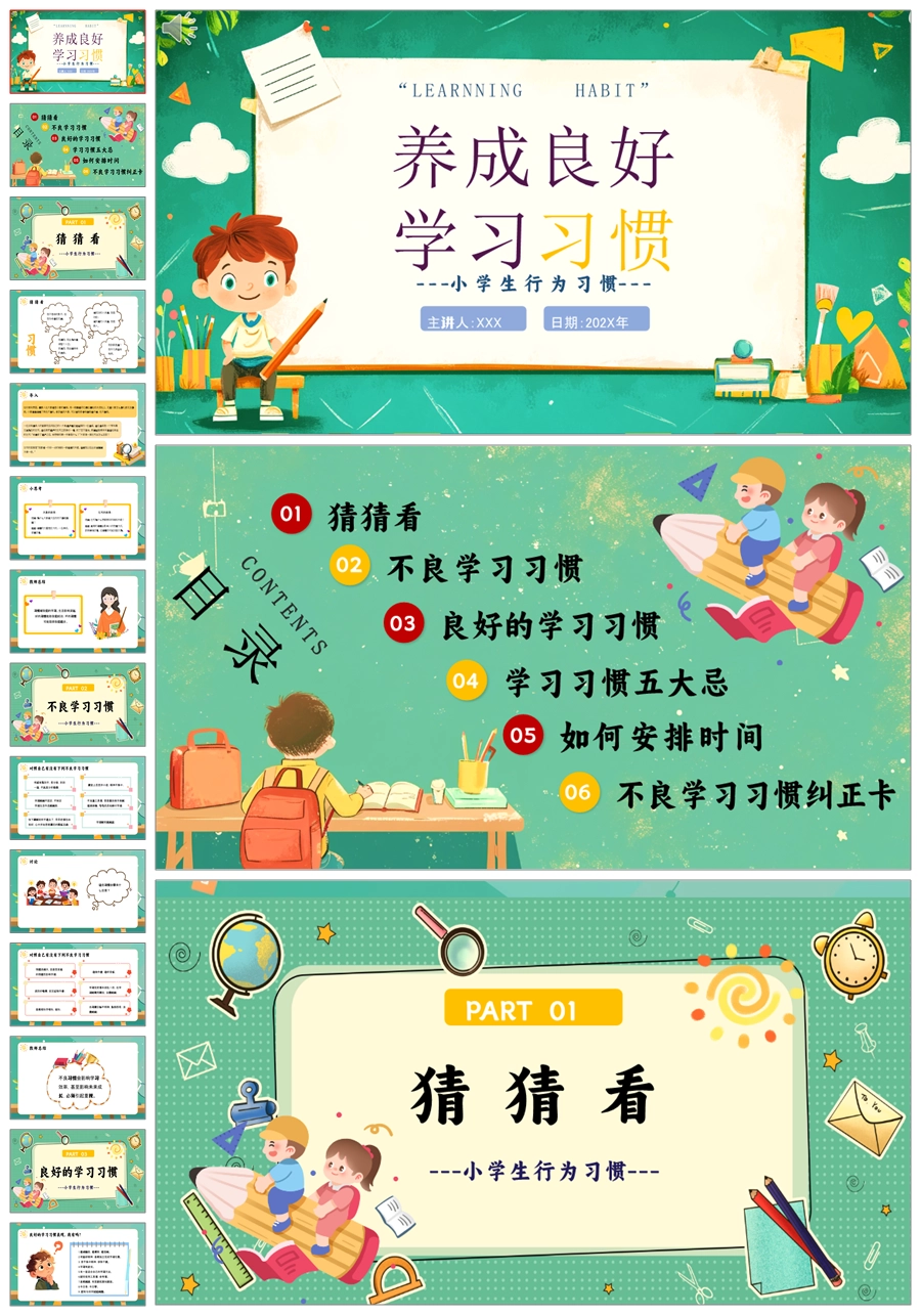 【6105】《养成良好学习习惯》小学生行为习惯主题班会PPT课件+教案