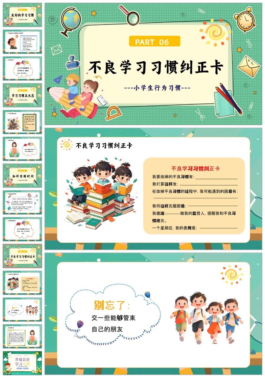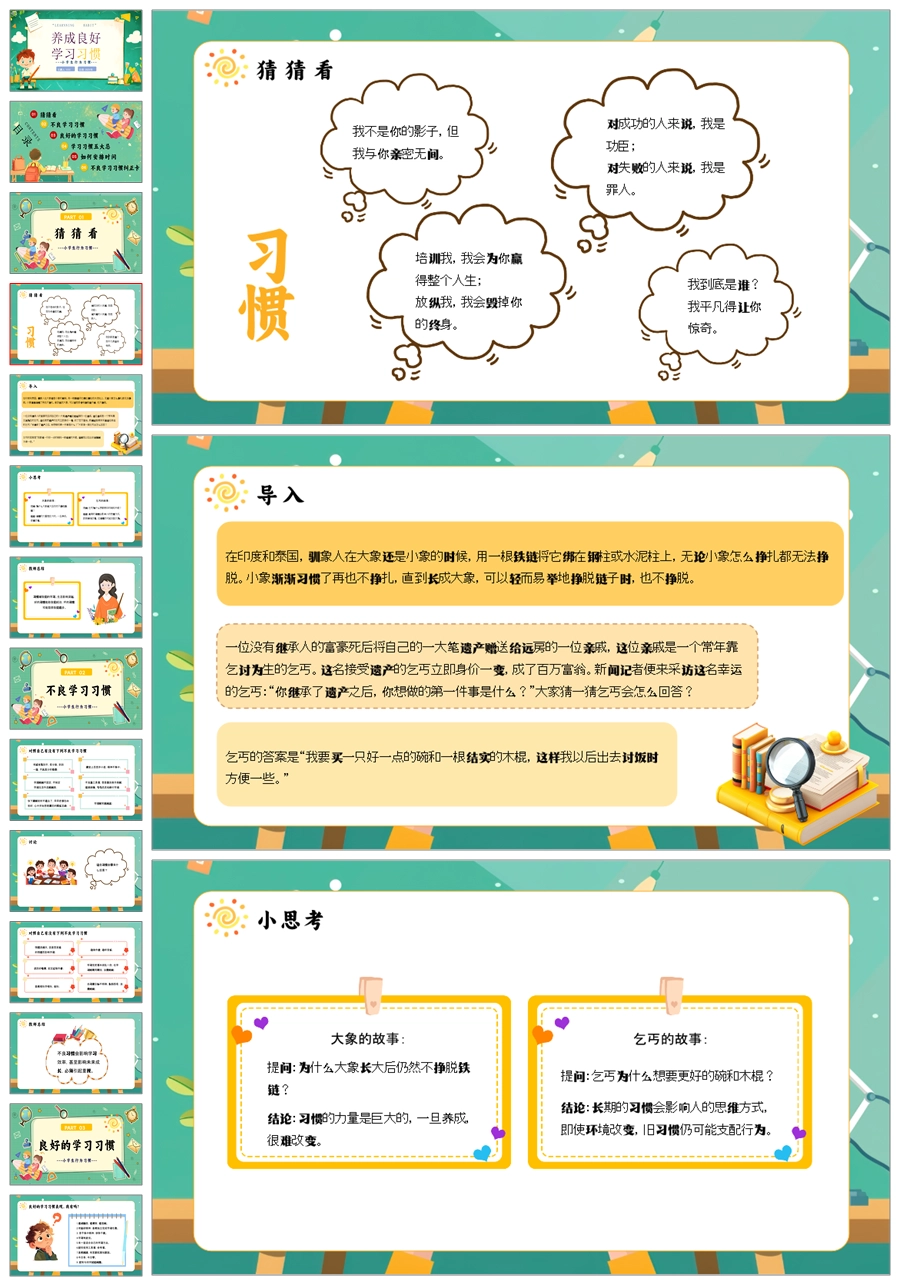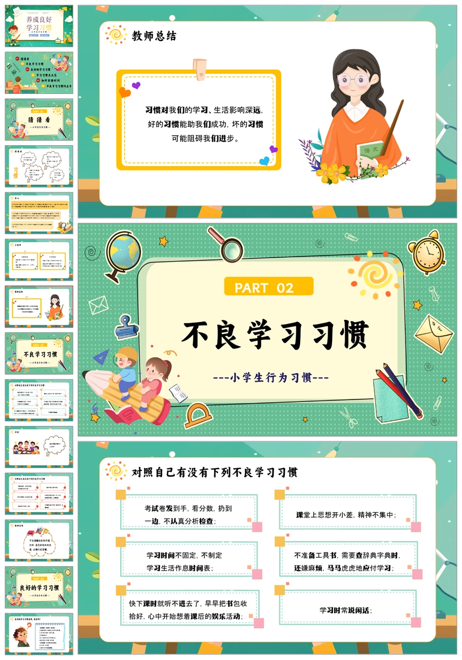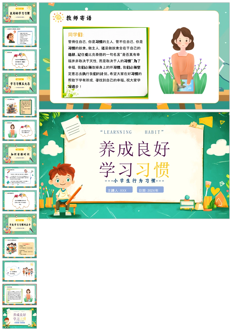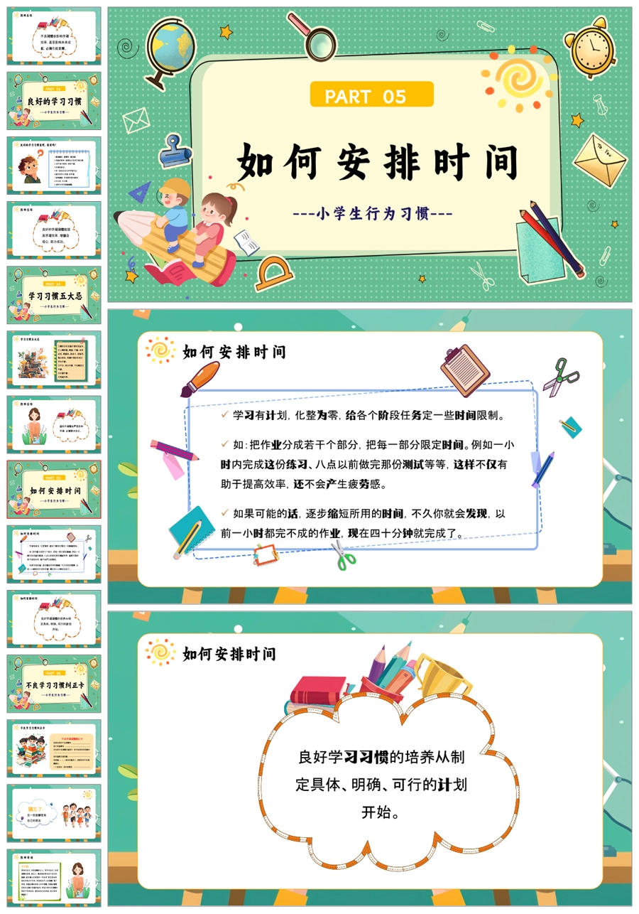 【6105】《养成良好学习习惯》小学生行为习惯主题班会PPT课件+教案