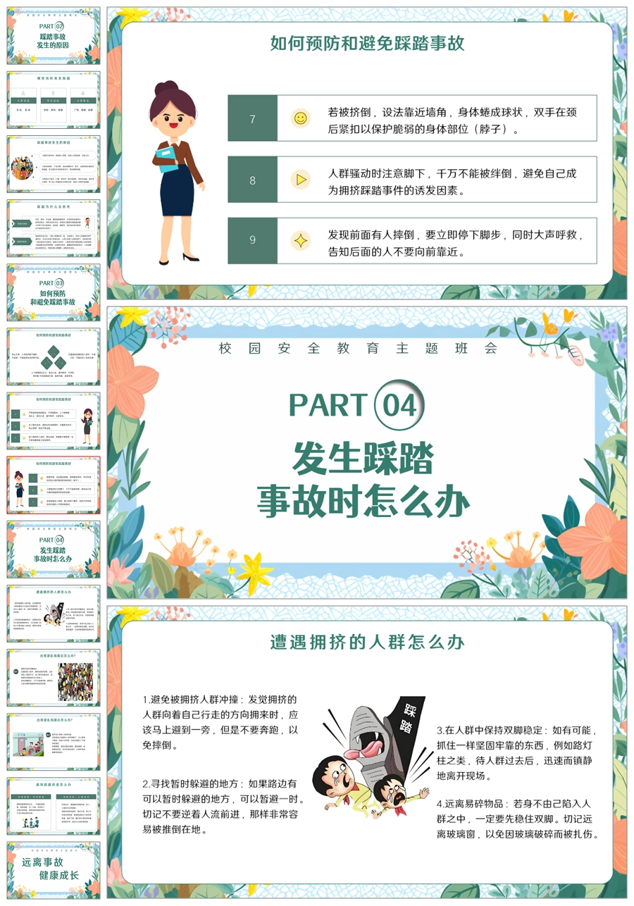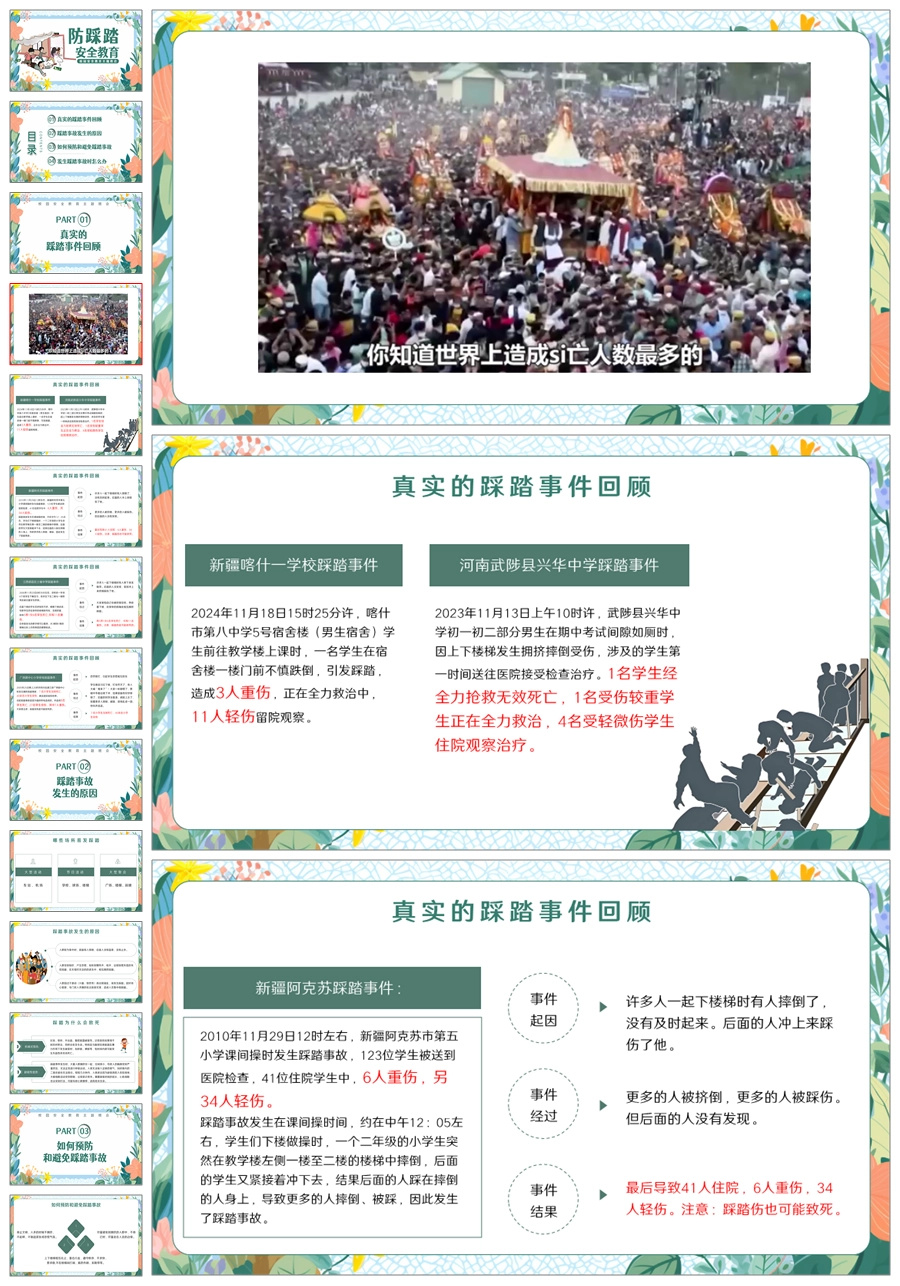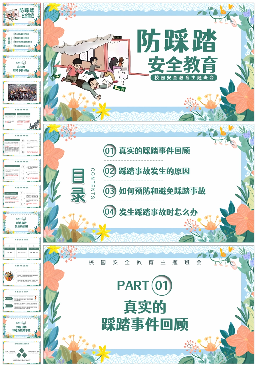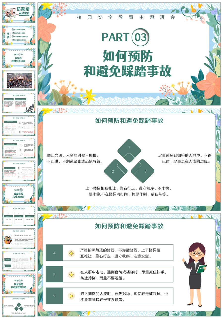 【6110】防踩踏安全教育校园安全教育主题班会PPT课件+教案+逐字稿+视频