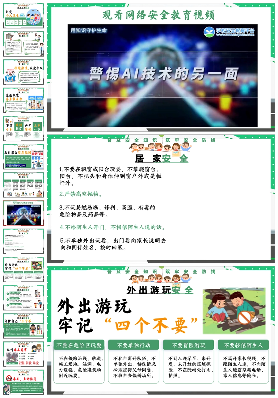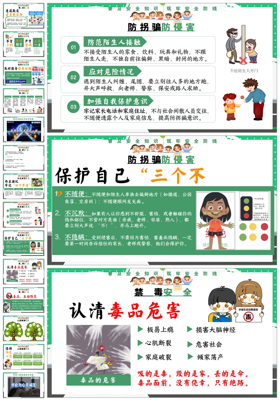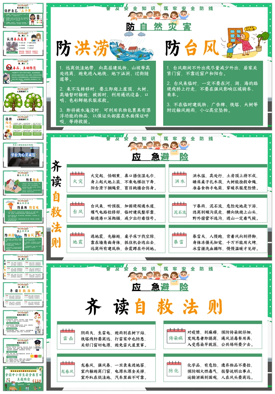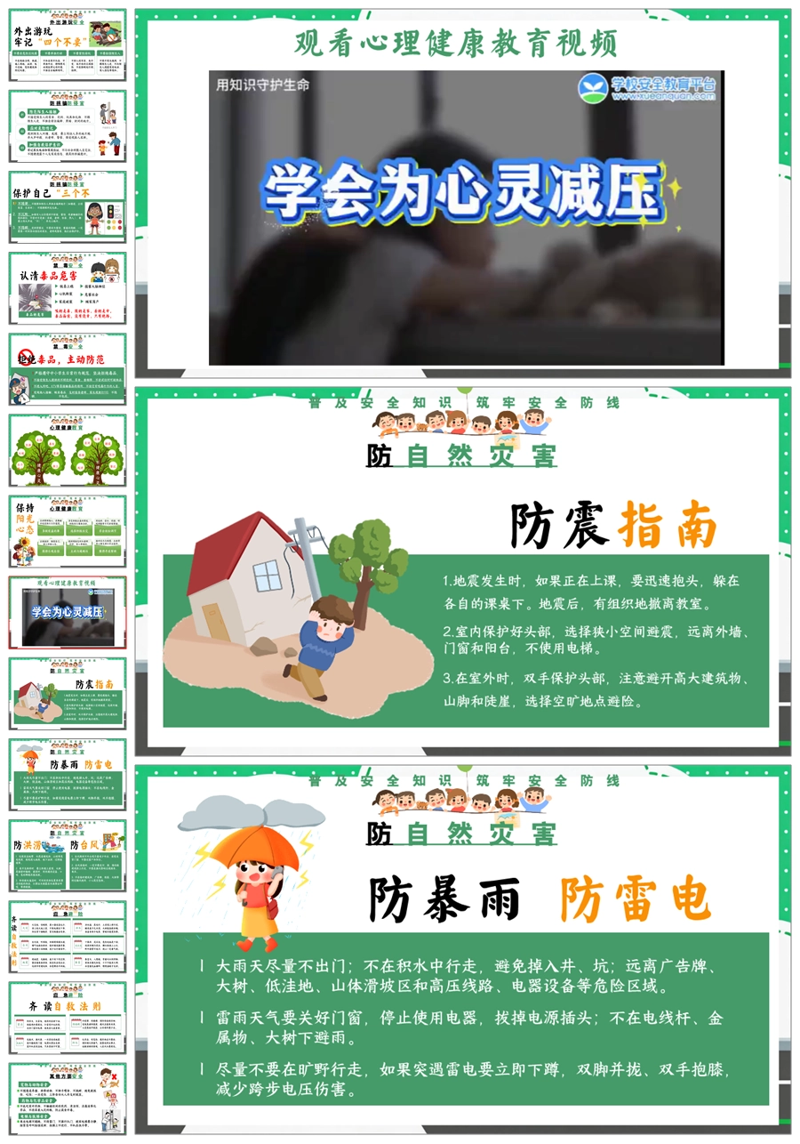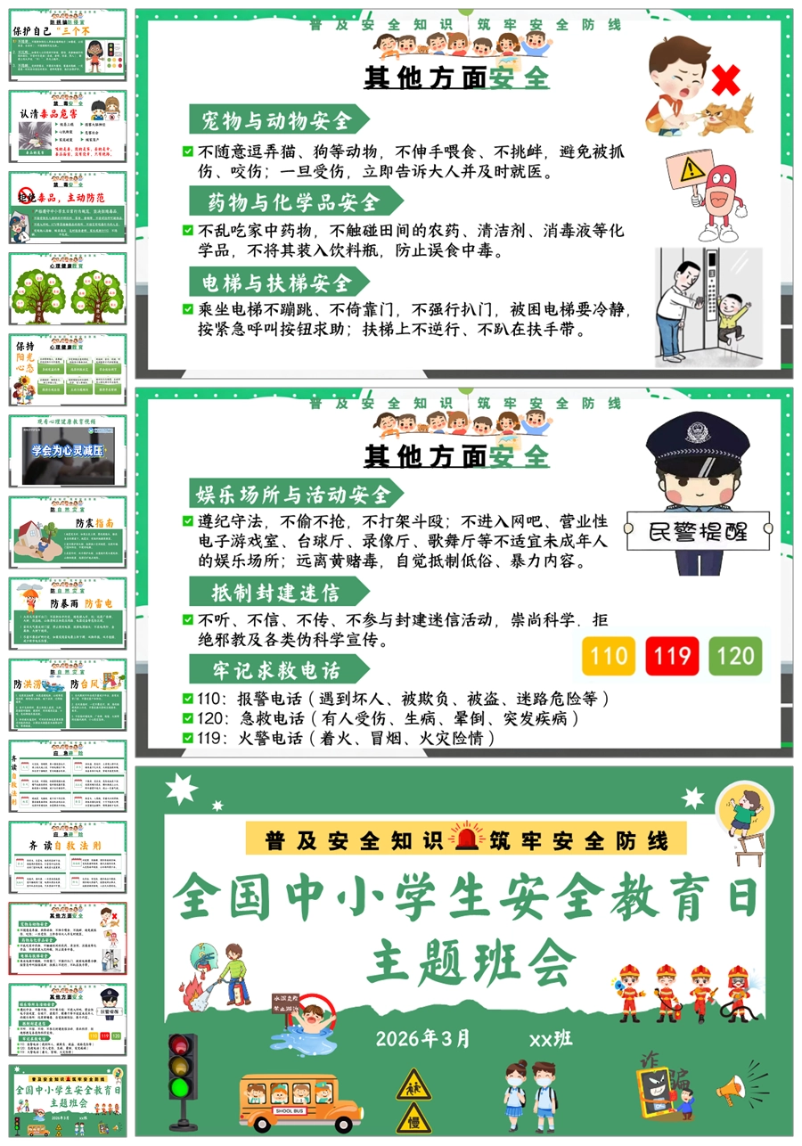 【8676】《安全护航成长路》全国中小学生安全教育日主题班会PPT课件+教案+视频