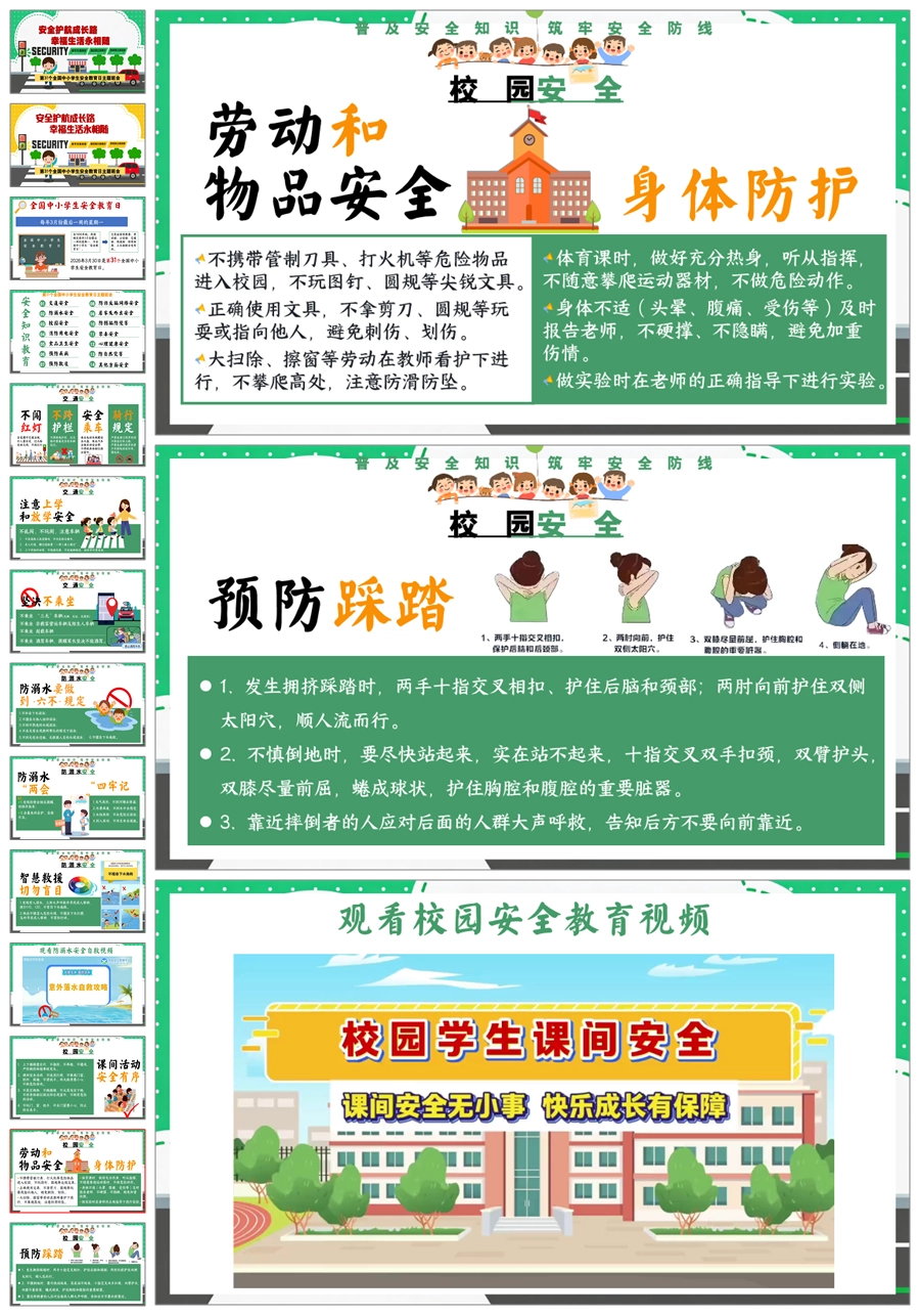 【8055】【安全教育】《平安校园行》校园安全教育主题班会课件PPT(课件+视频)