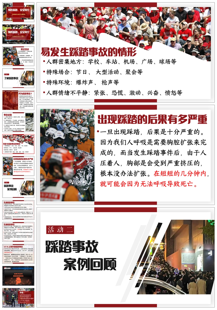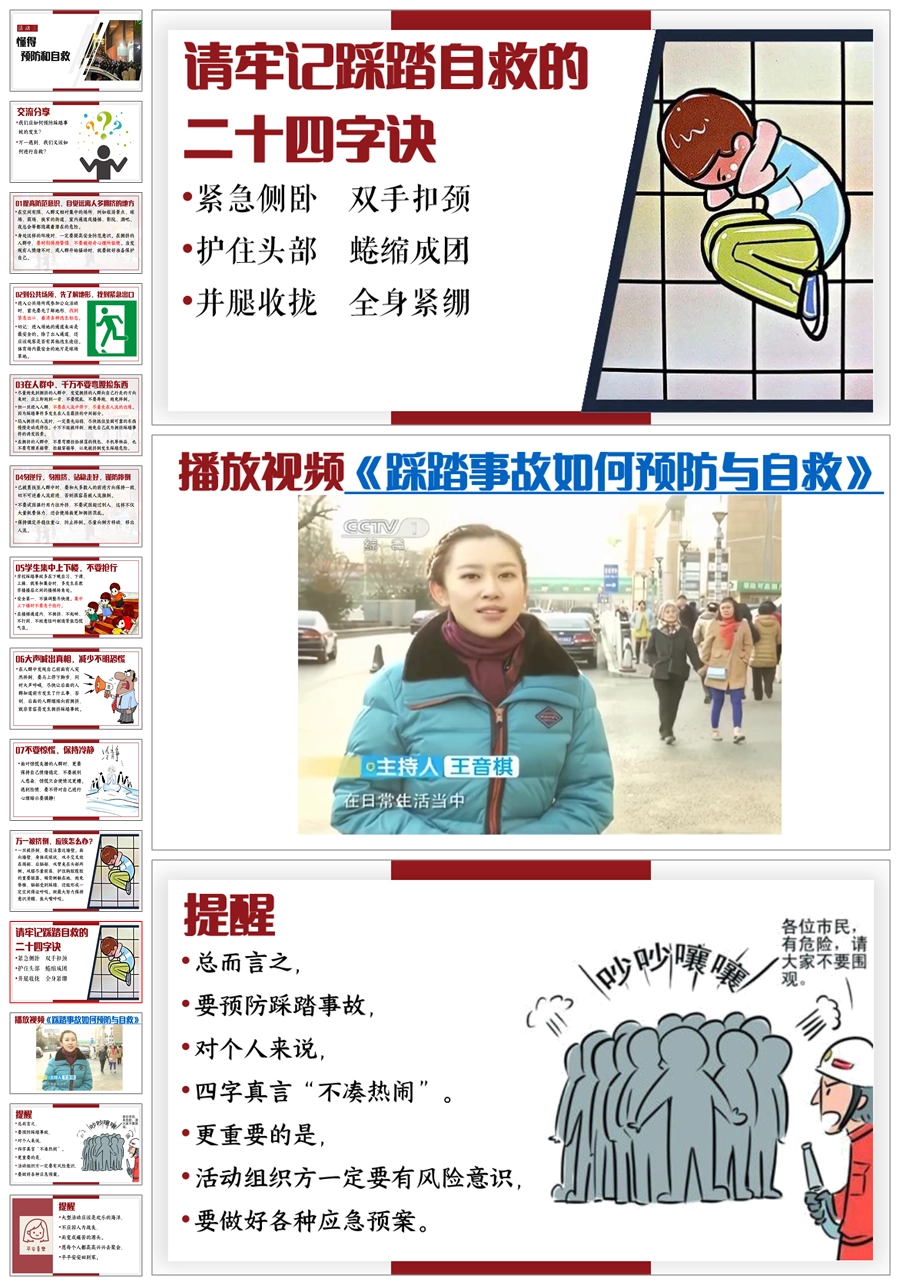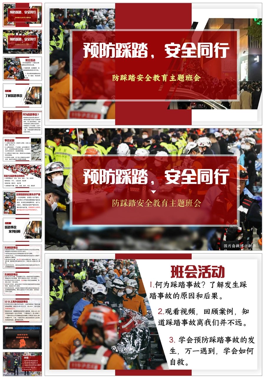 【8678】《预防踩踏,安全同行》预防踩踏主题班会PPT课件+视频+教案+发言稿