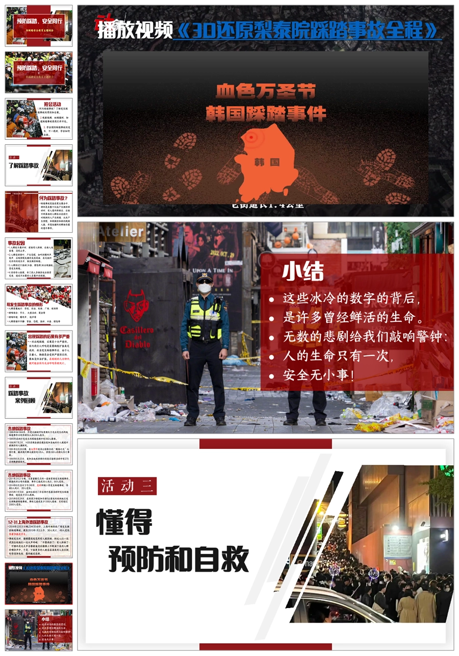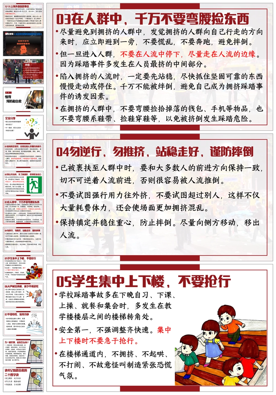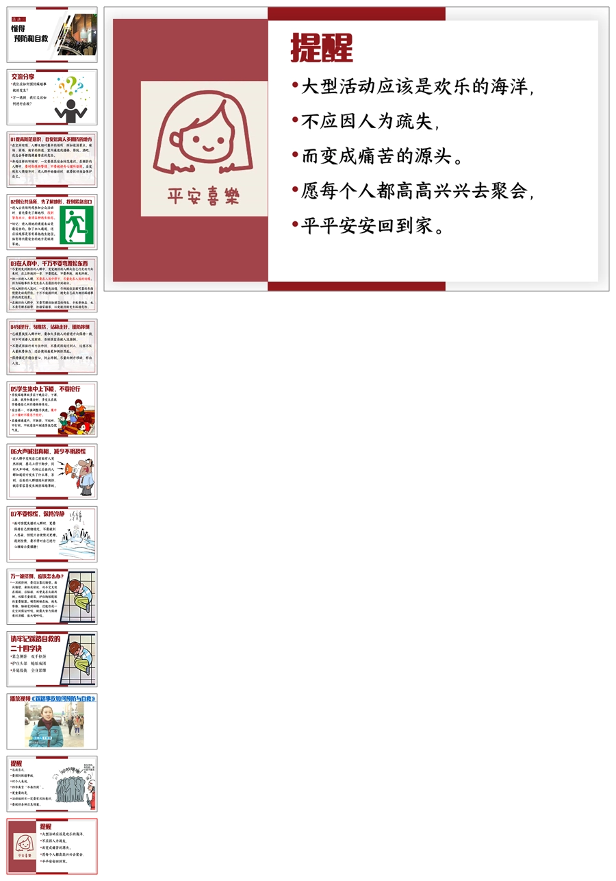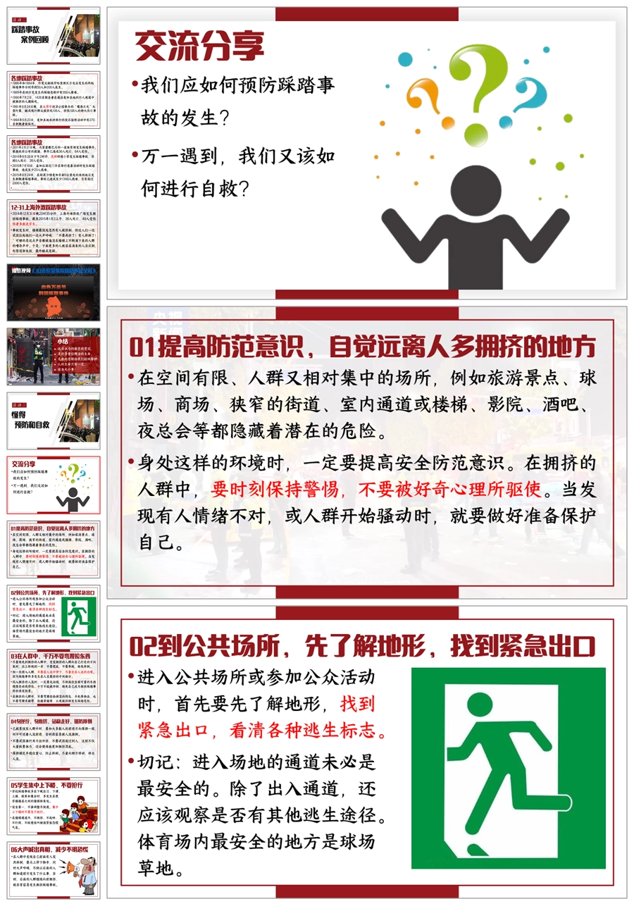 【8678】《预防踩踏,安全同行》预防踩踏主题班会PPT课件+视频+教案+发言稿