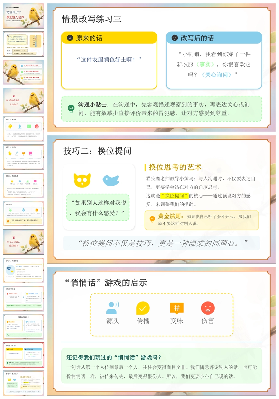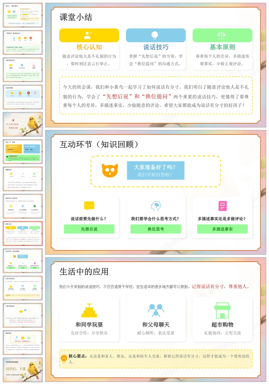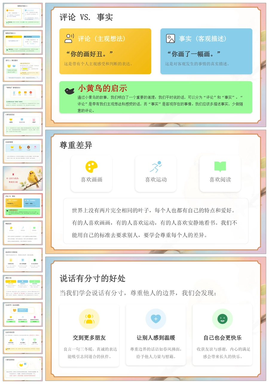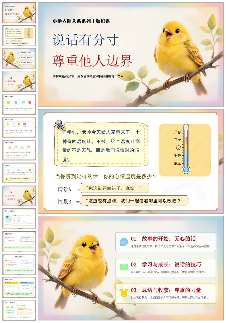 【6121】《说话有分寸,尊重他人边界》小学人际交往主题班会PPT课件+教案+逐字稿