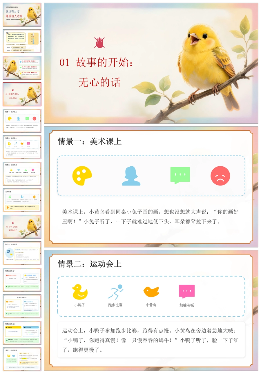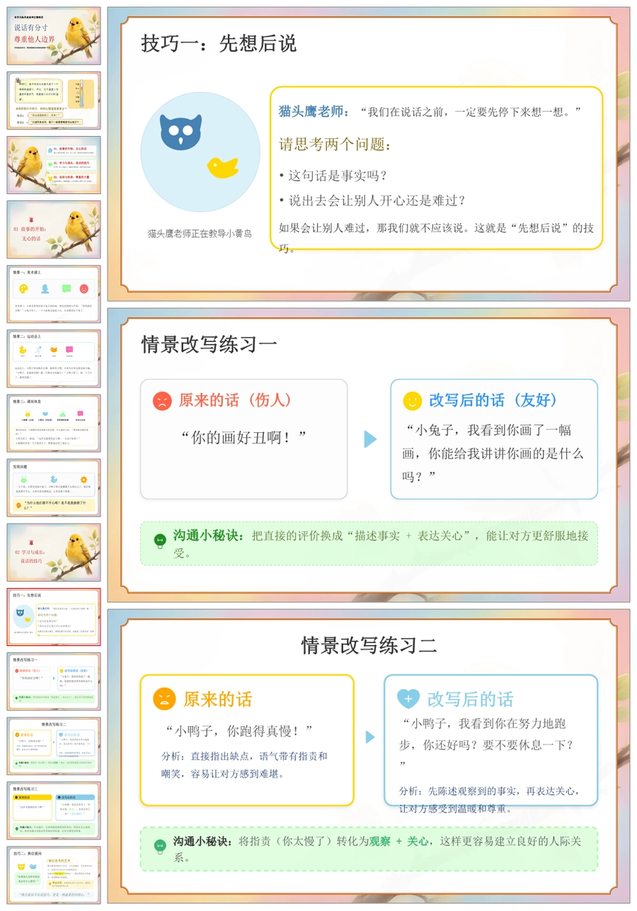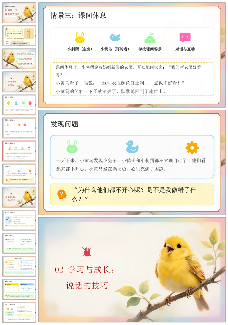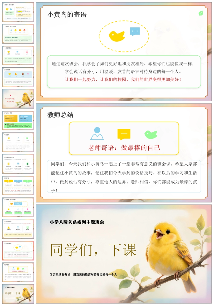 【6121】《说话有分寸,尊重他人边界》小学人际交往主题班会PPT课件+教案+逐字稿