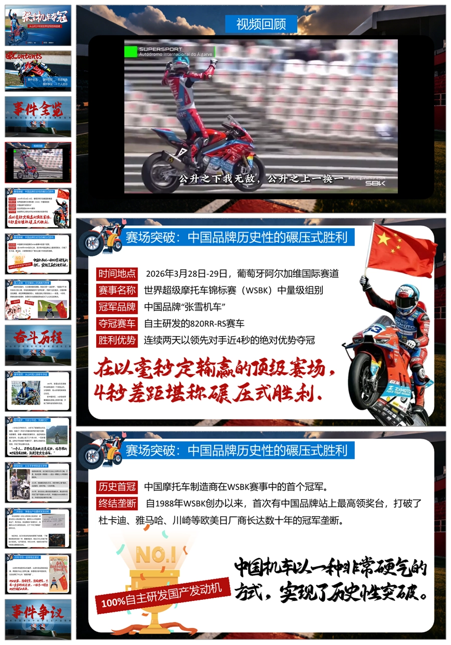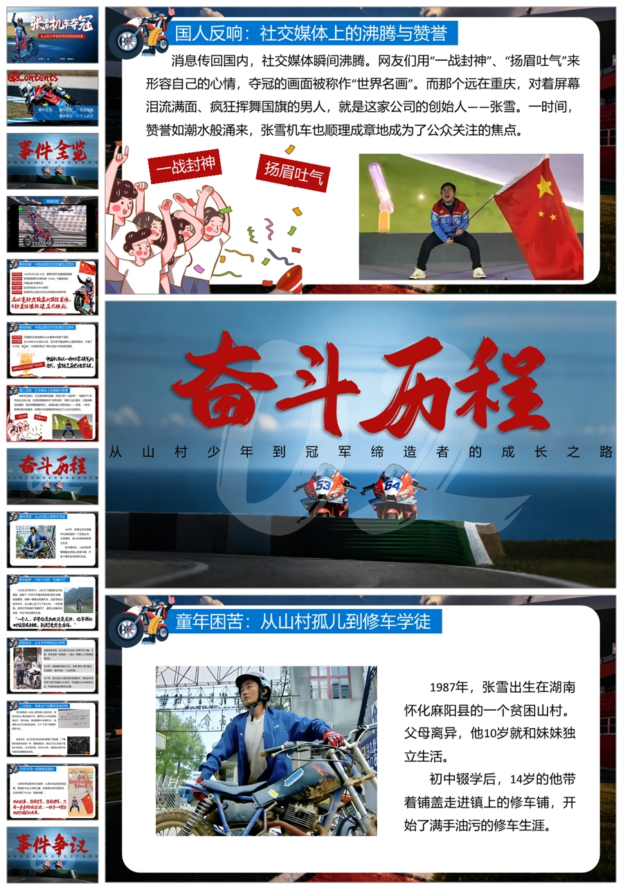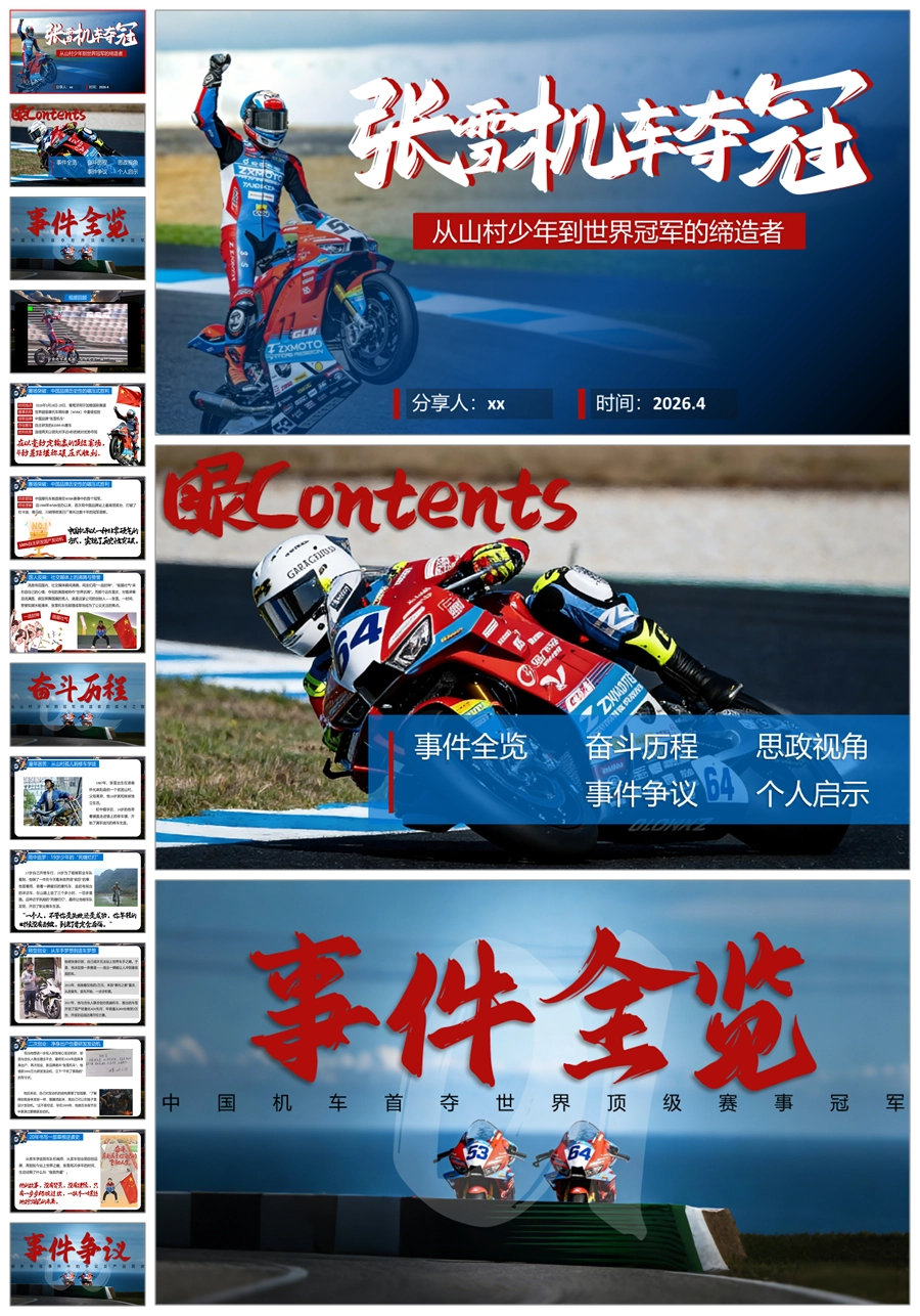 【6125】《张雪机车夺冠》从山村少年到世界冠军的缔造者PPT课件+演讲稿+视频