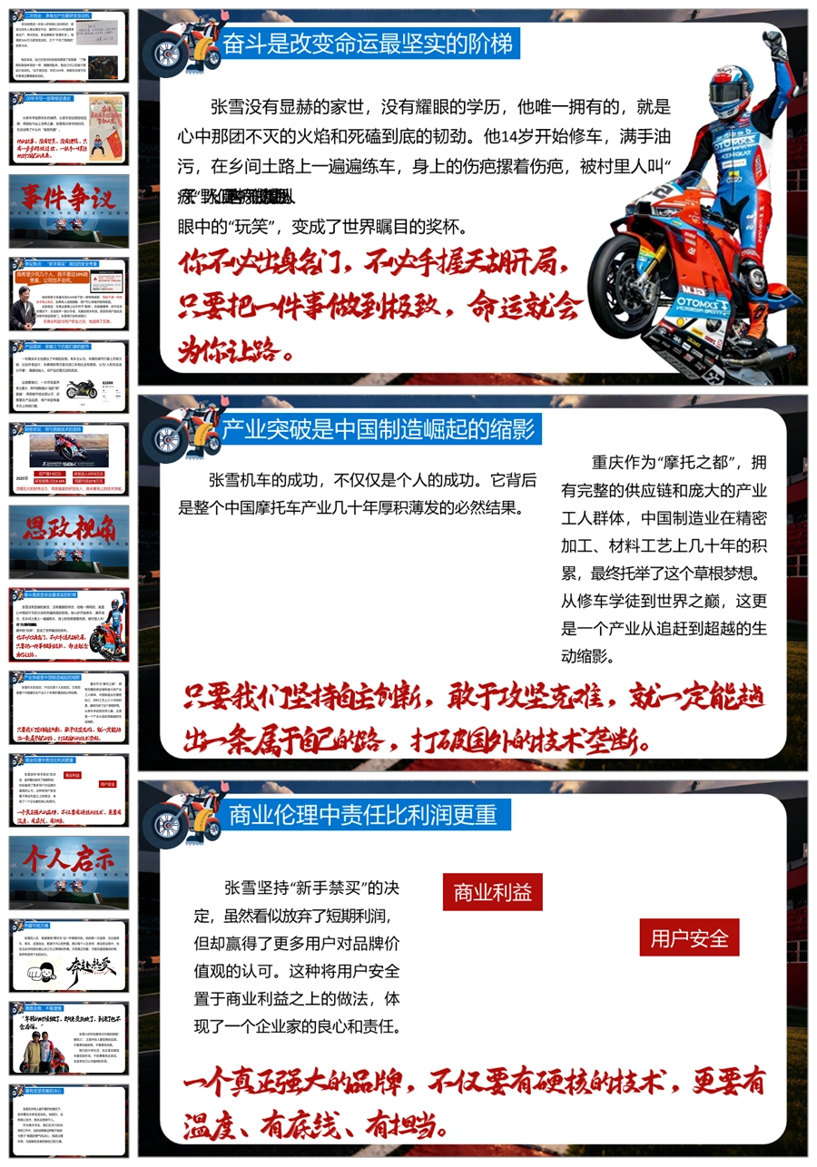 【6119】《从修车铺到世界冠军》张雪机车世界夺冠的追梦启示励志主题班会PPT课件+教案+视频+逐字稿