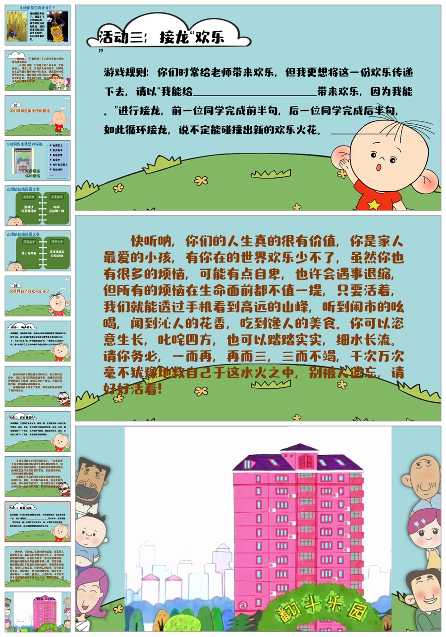 【6130】【通用】【生命教育】主题班会:这世界有了我欢乐少不了PPT课件+逐字稿
