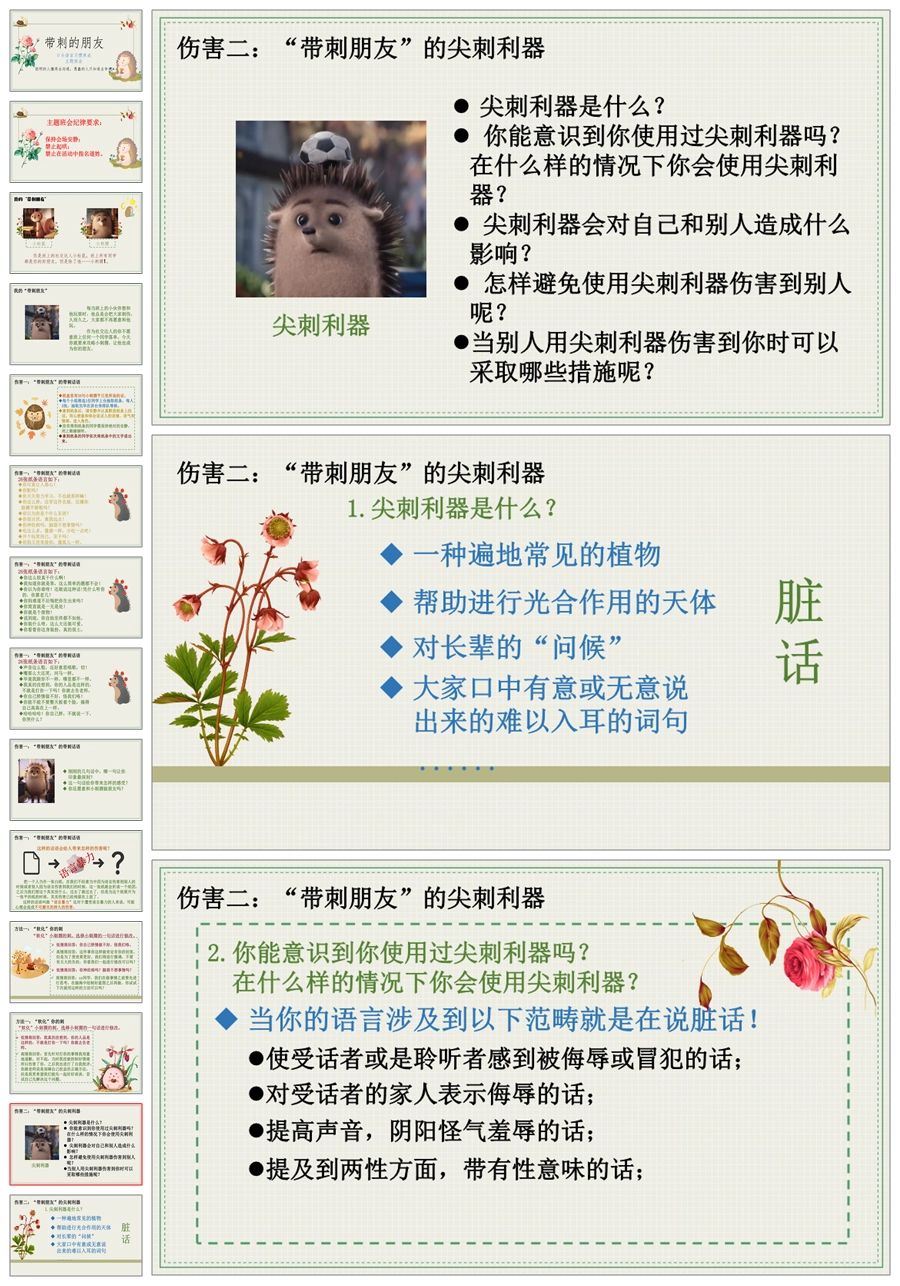【6136】【中小学】【习惯养成】教育主题班会:带刺的朋友