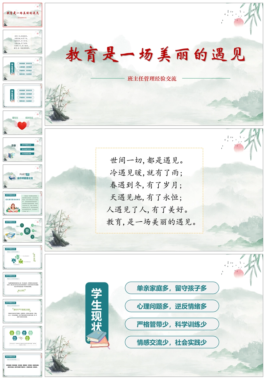 【8681】【经验交流】《教育是一场美丽的遇见》班主任工作经验交流PPT课件+发言稿