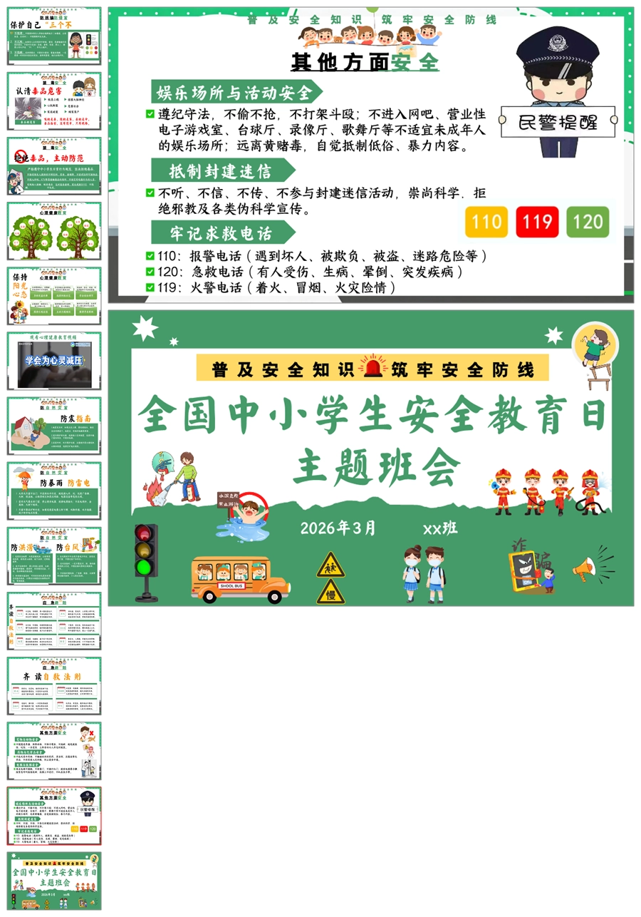 【8684】《安全护航成长路》全国中小学生安全教育日主题班会PPT课件+教案+视频
