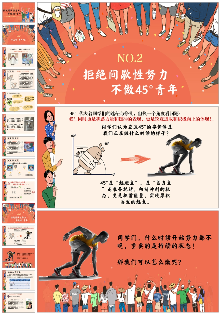 【8688】《不做45度青年》拒绝躺平励志主题班会PPT课件+教案+发言稿