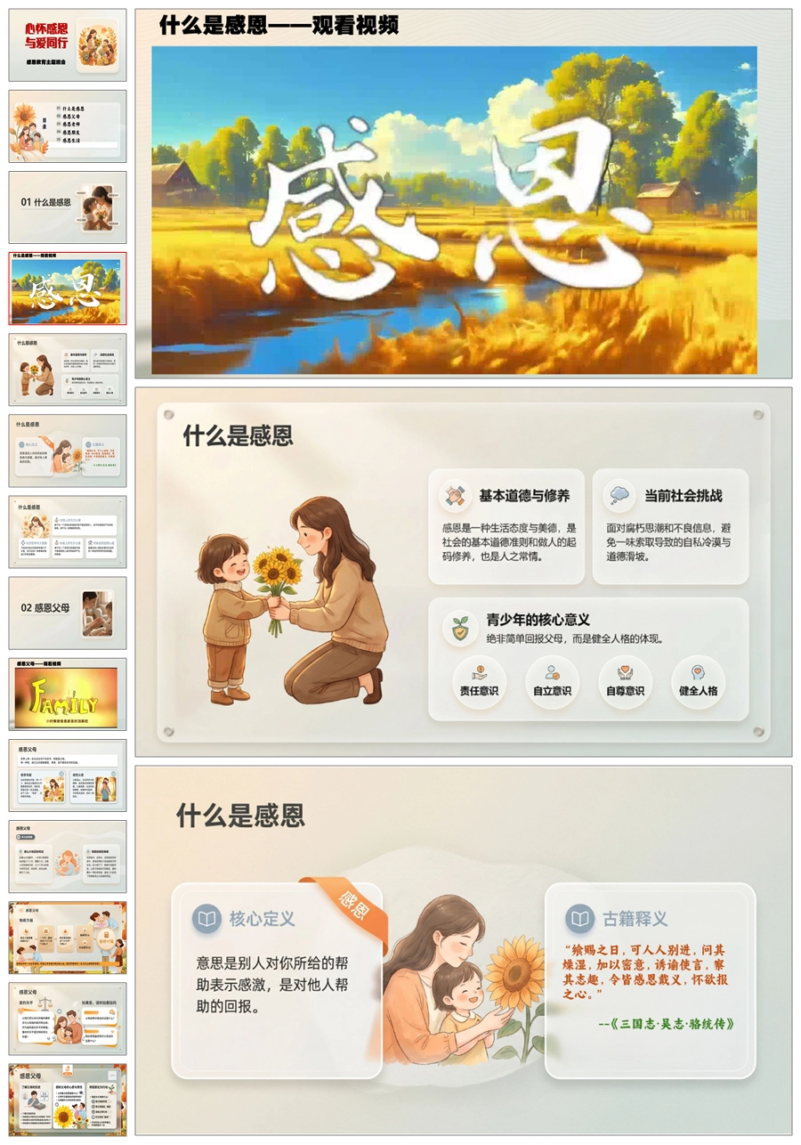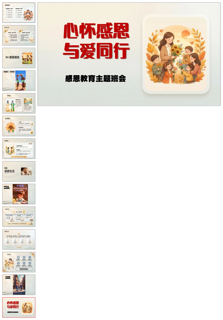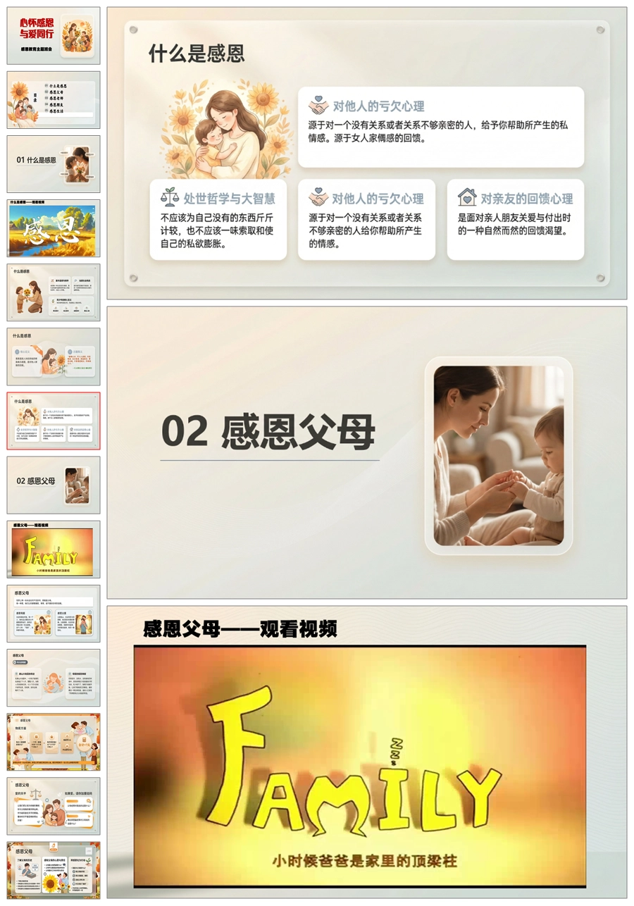 【8691】《心怀感恩与爱同行》感恩教育主题班会ppt课件视频+教案+主持稿2