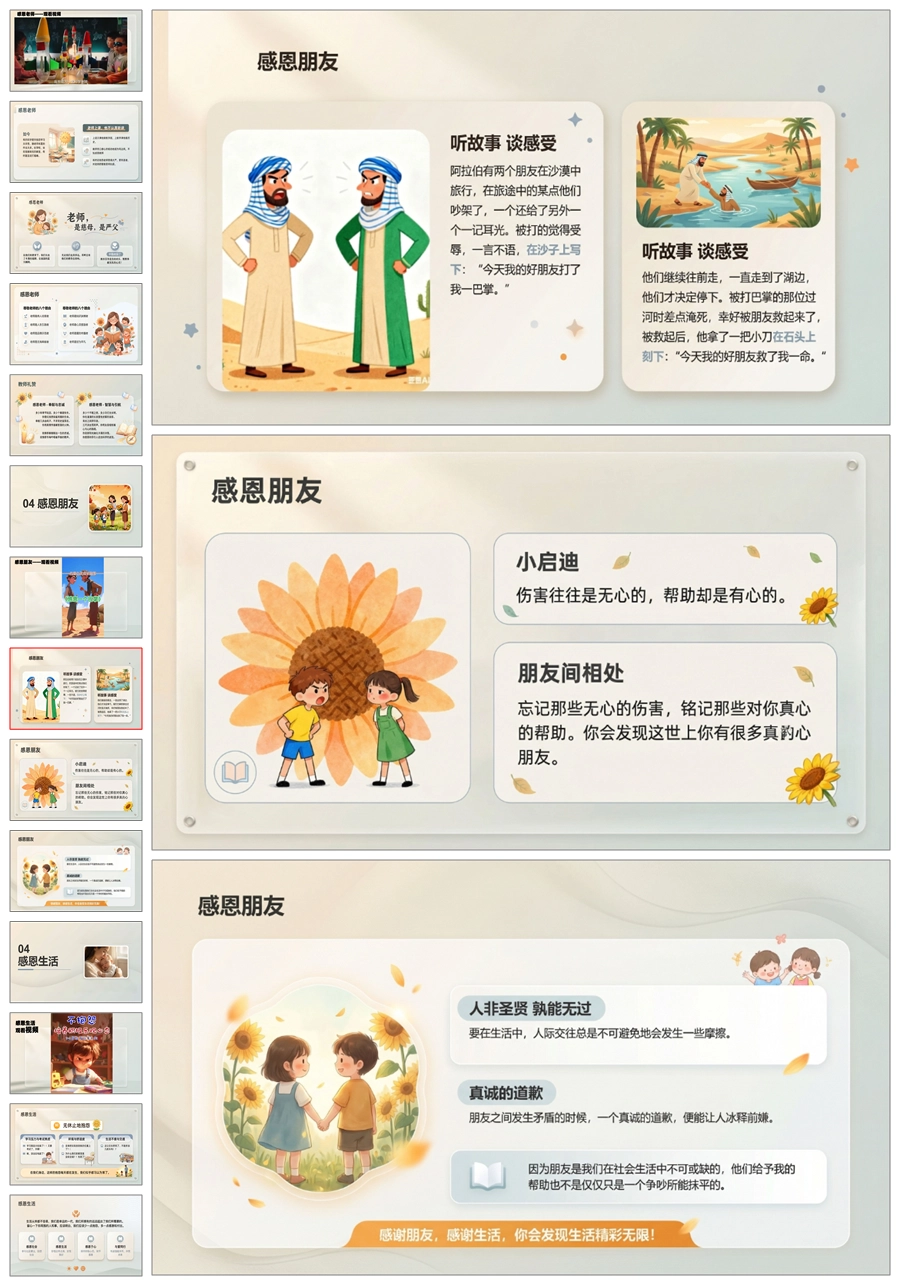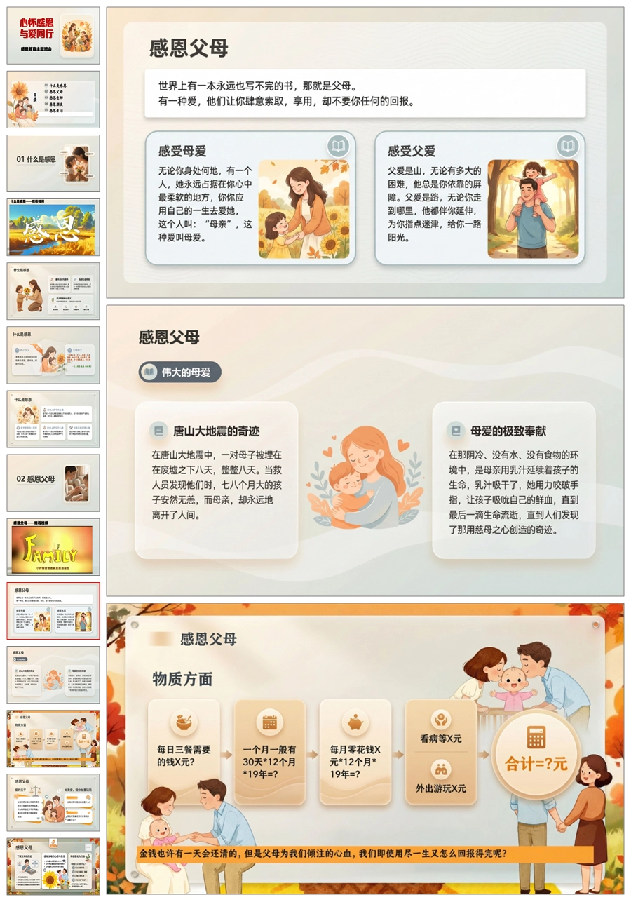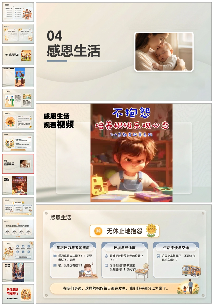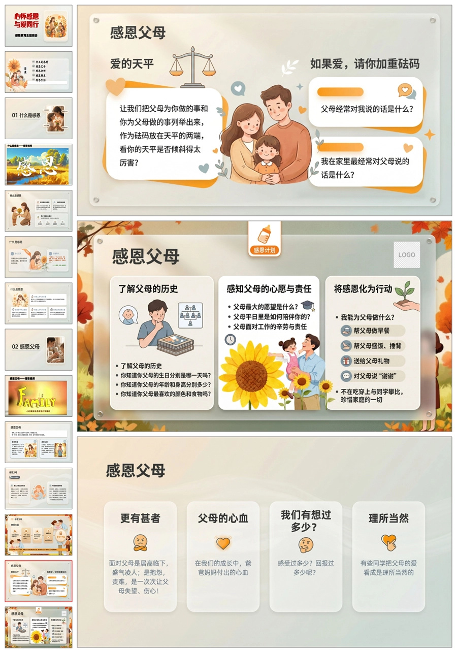 【8691】《心怀感恩与爱同行》感恩教育主题班会ppt课件视频+教案+主持稿2