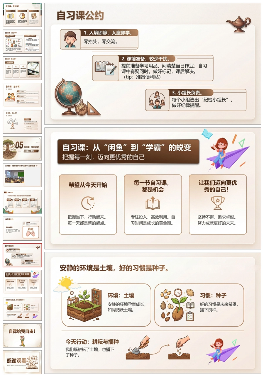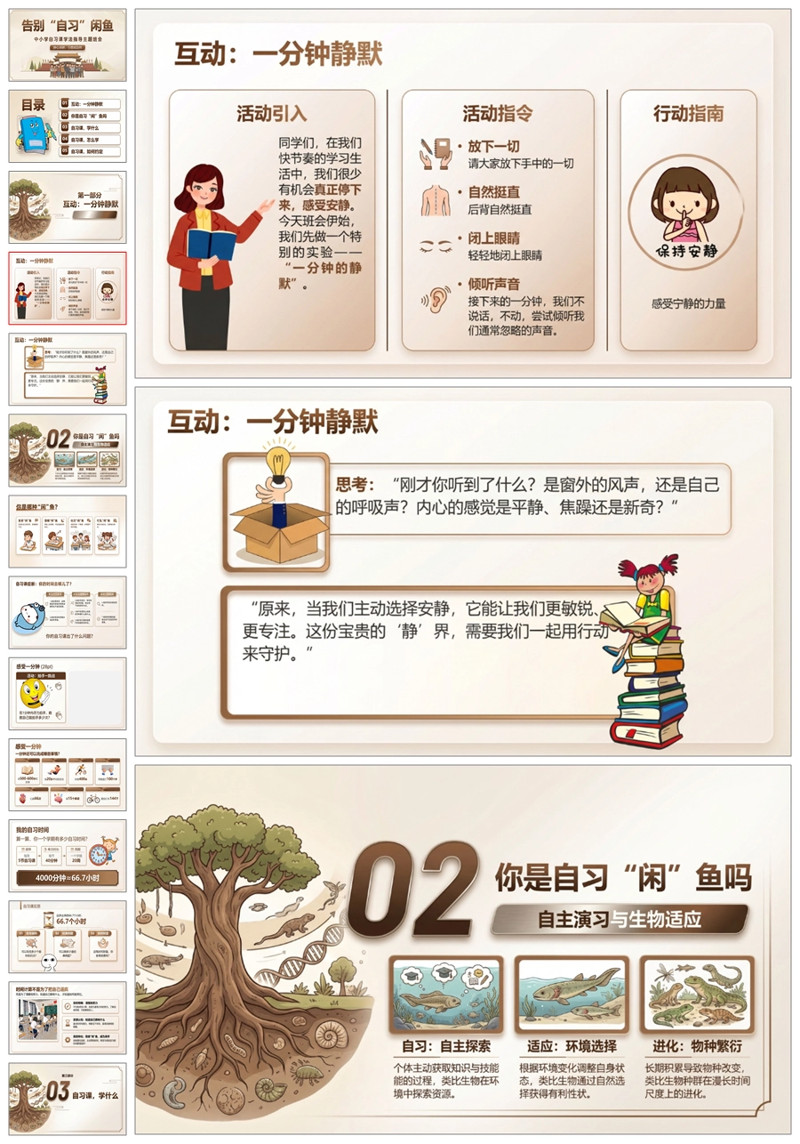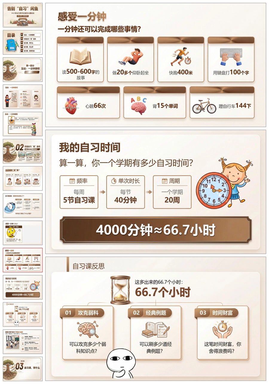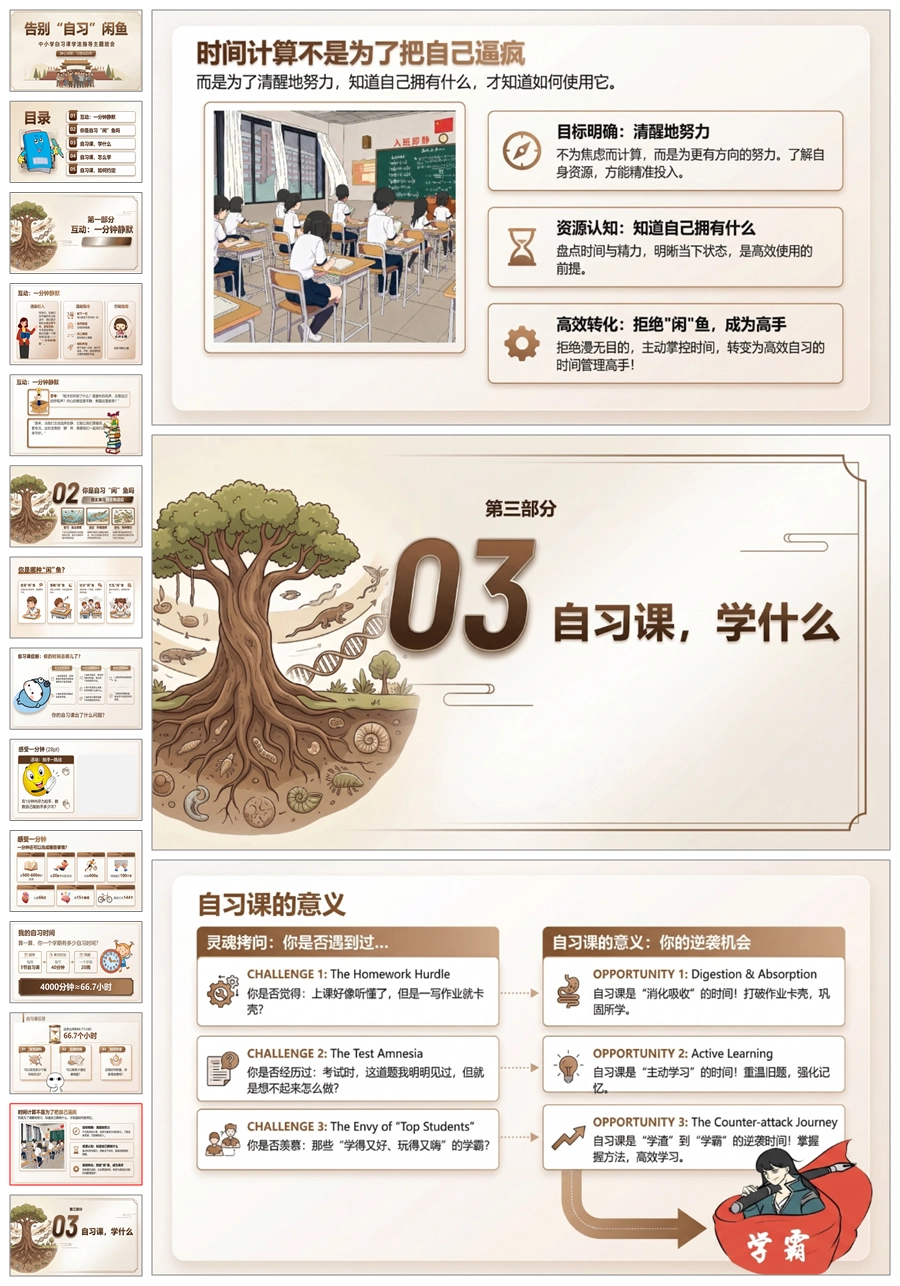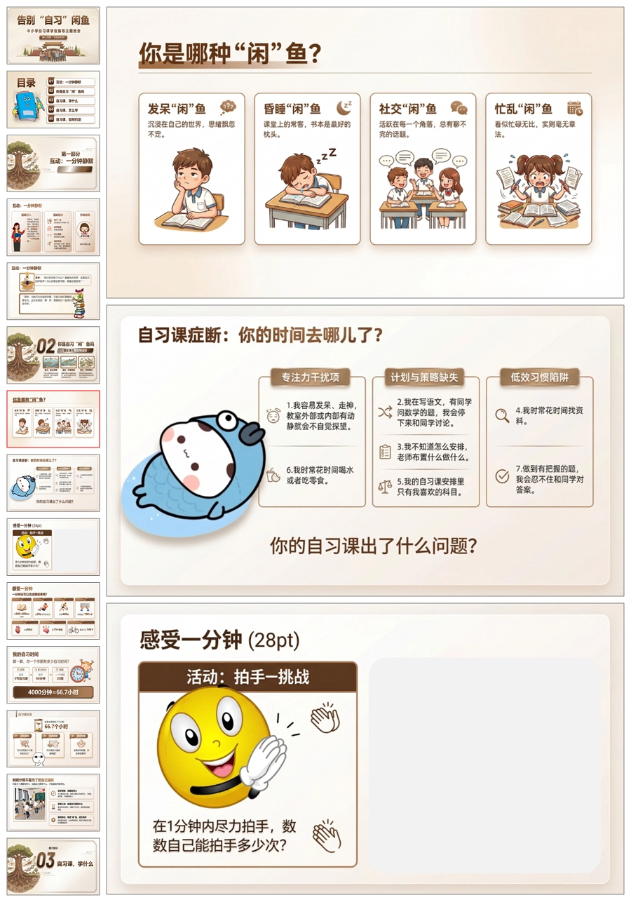 【8696】《告别自习“闲”鱼》自习课学法指导班会PPT课件+教案